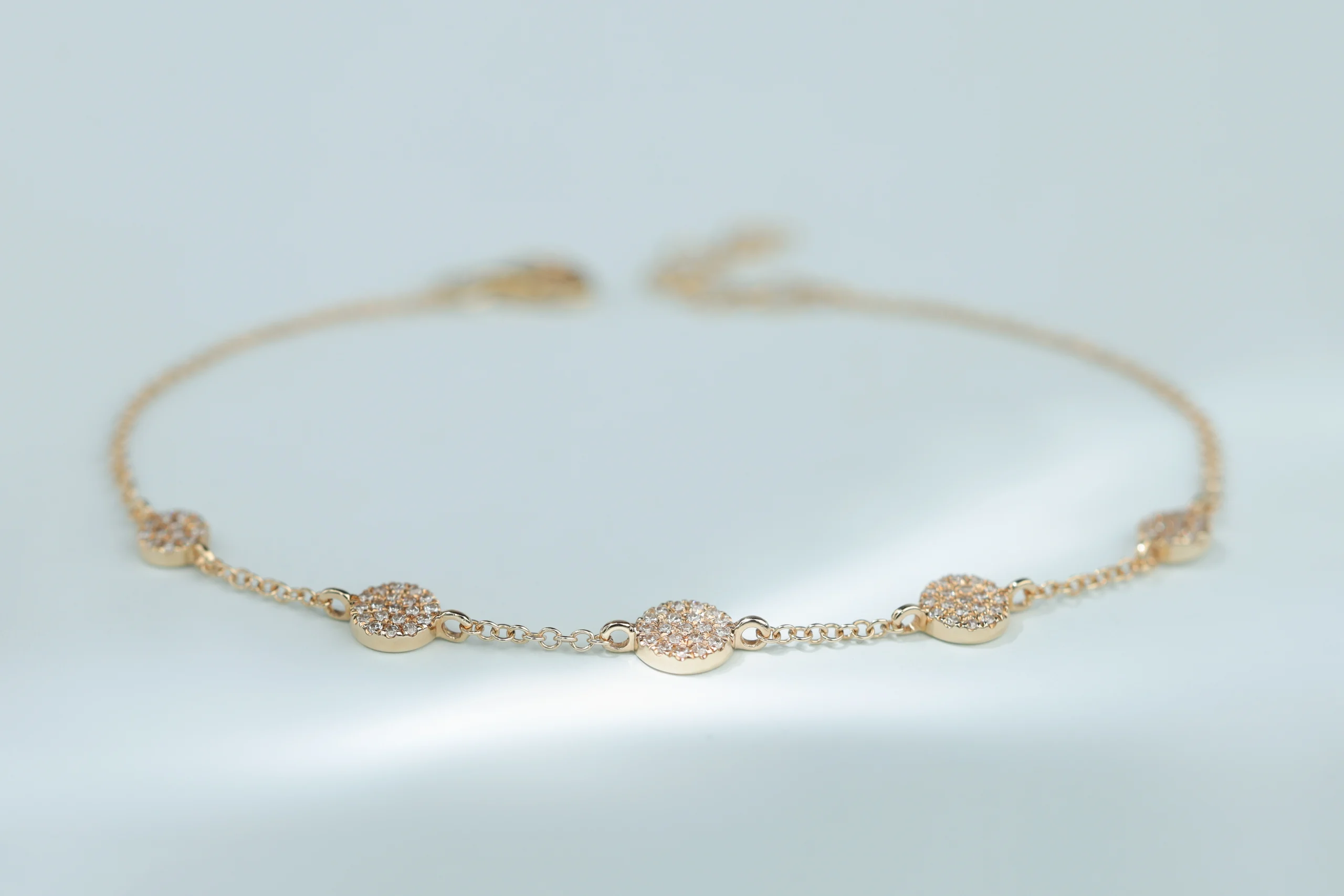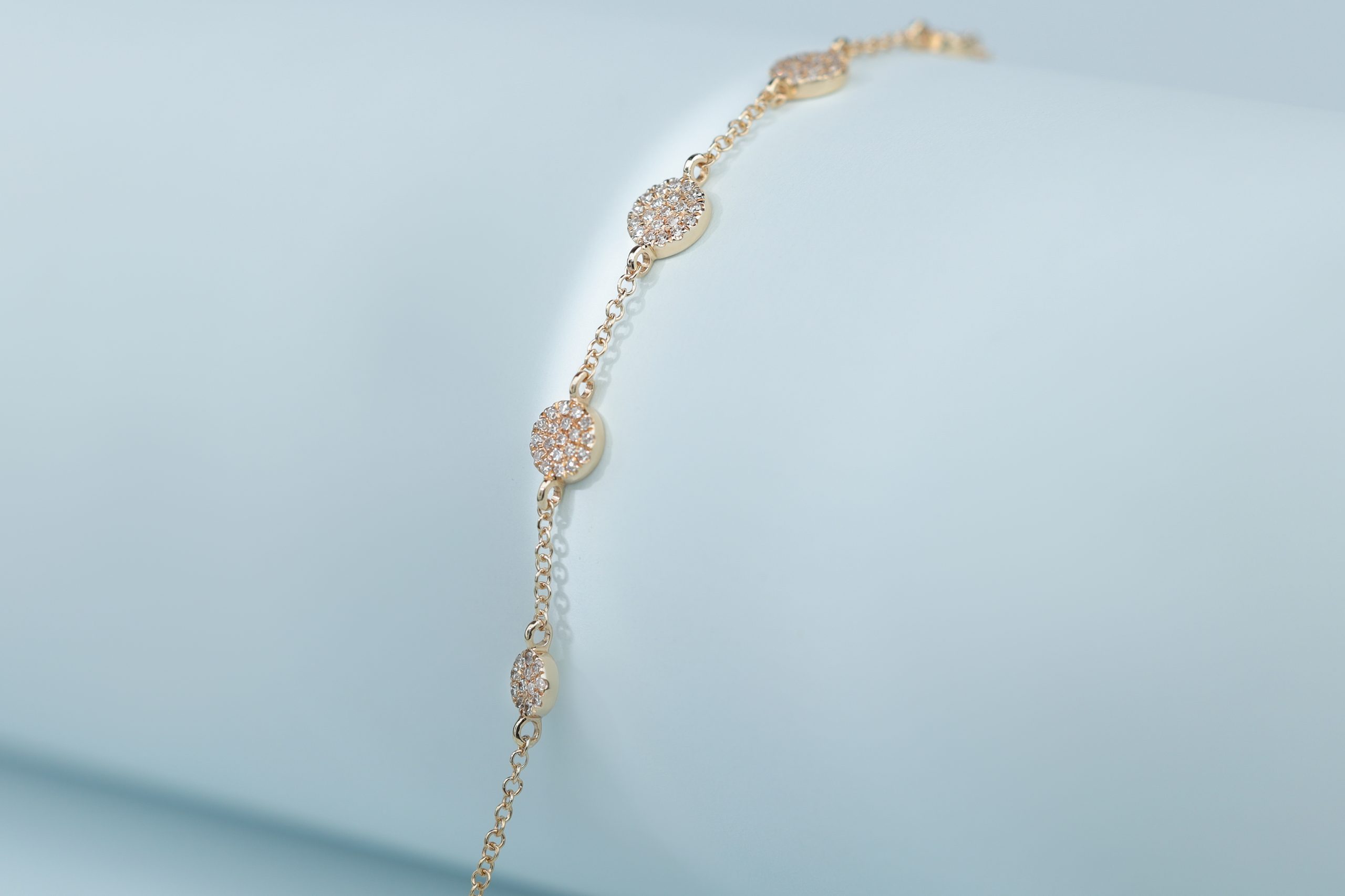 Браслет из золота с 82 бриллиантами в огранке «круглая» весом 0,18 карат, цвет 4, чистота 5.