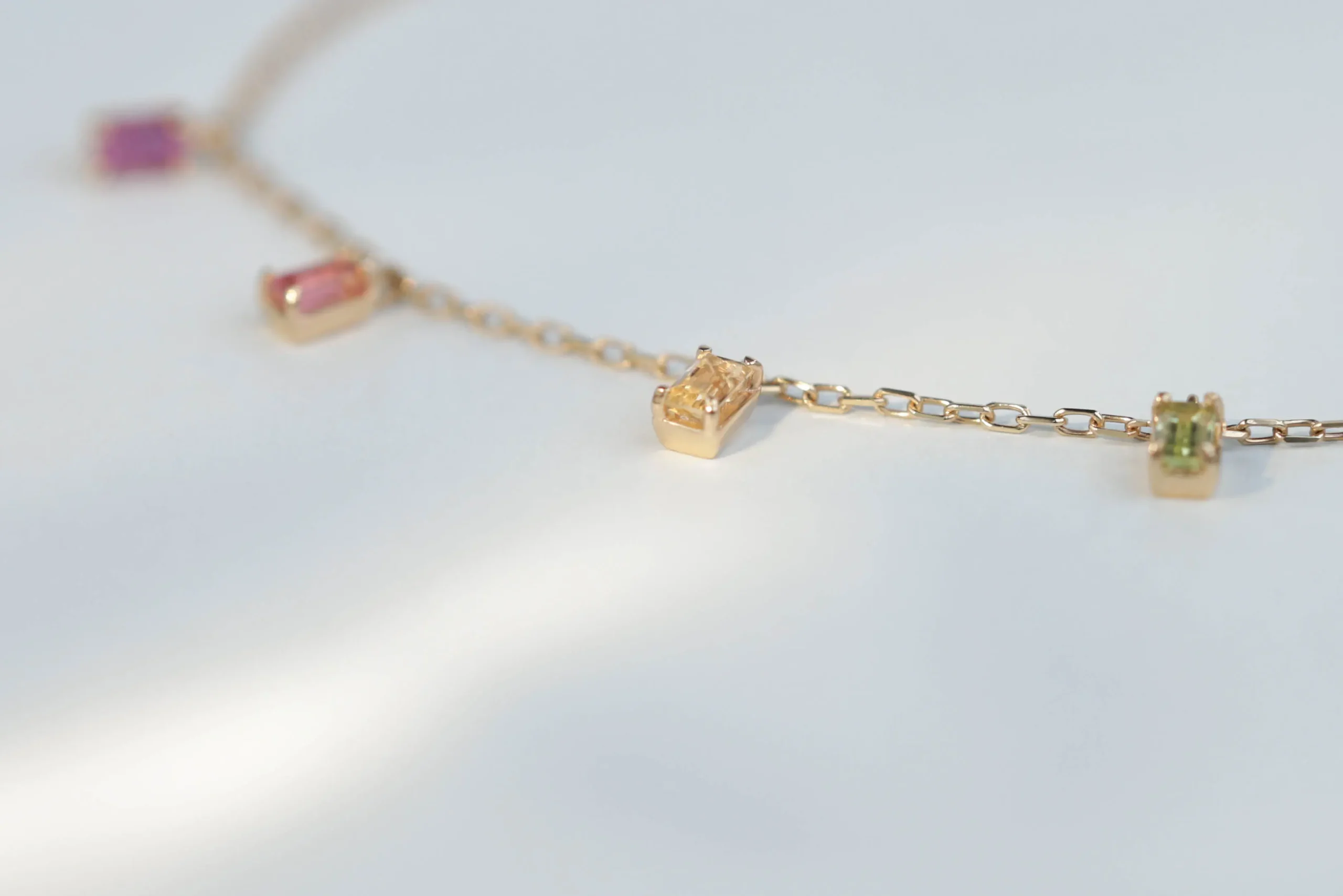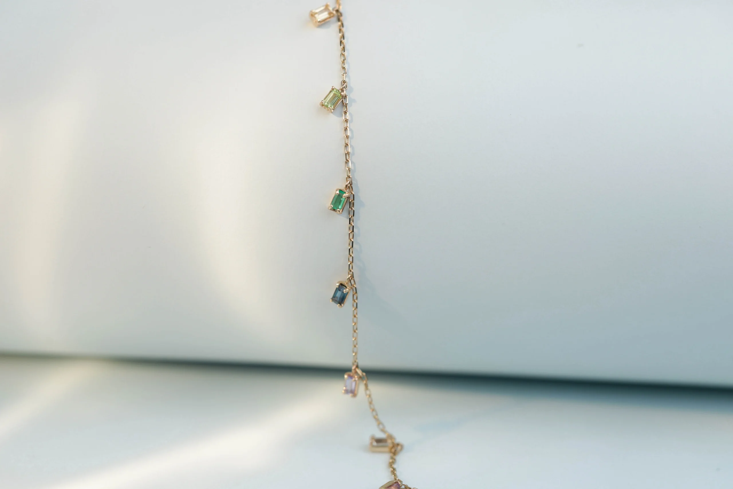 Главная Браслет Браслет с изумрудом, рубином, сапфиром, турмалином, цитрином, перидотом, танзанитом и аквамарином