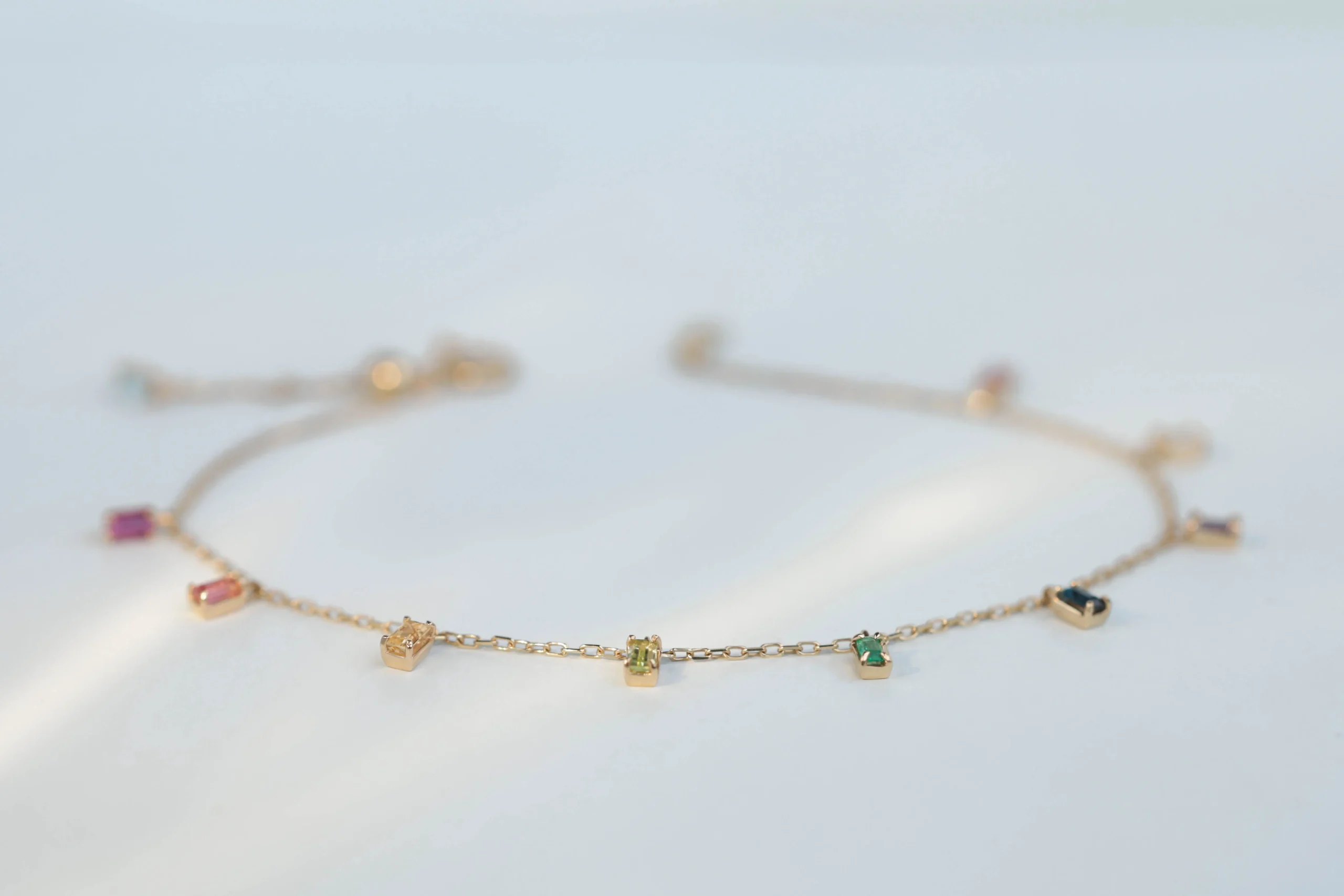 Браслет с изумрудом, рубином, сапфиром, турмалином, цитрином, перидотом, танзанитом и аквамарином