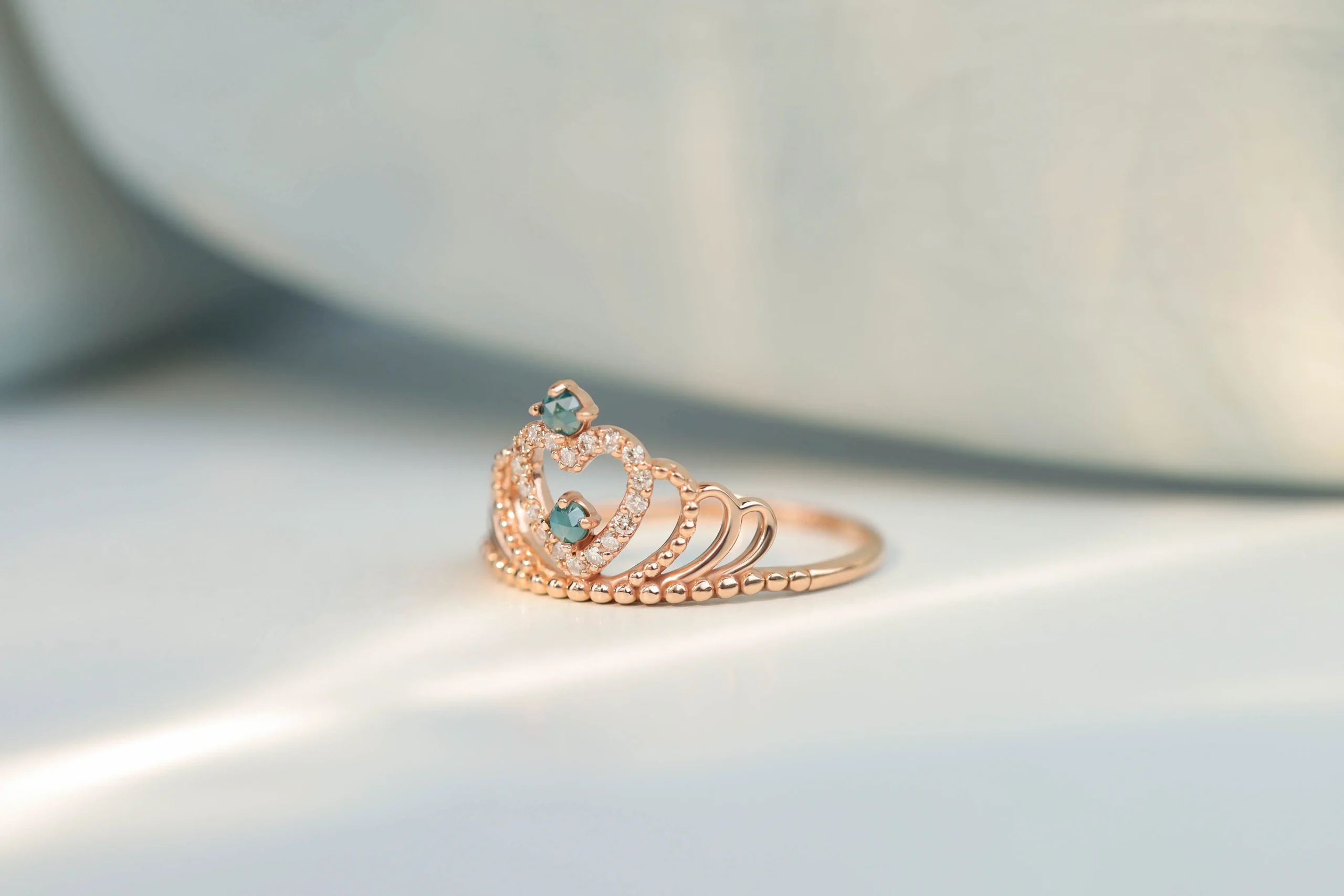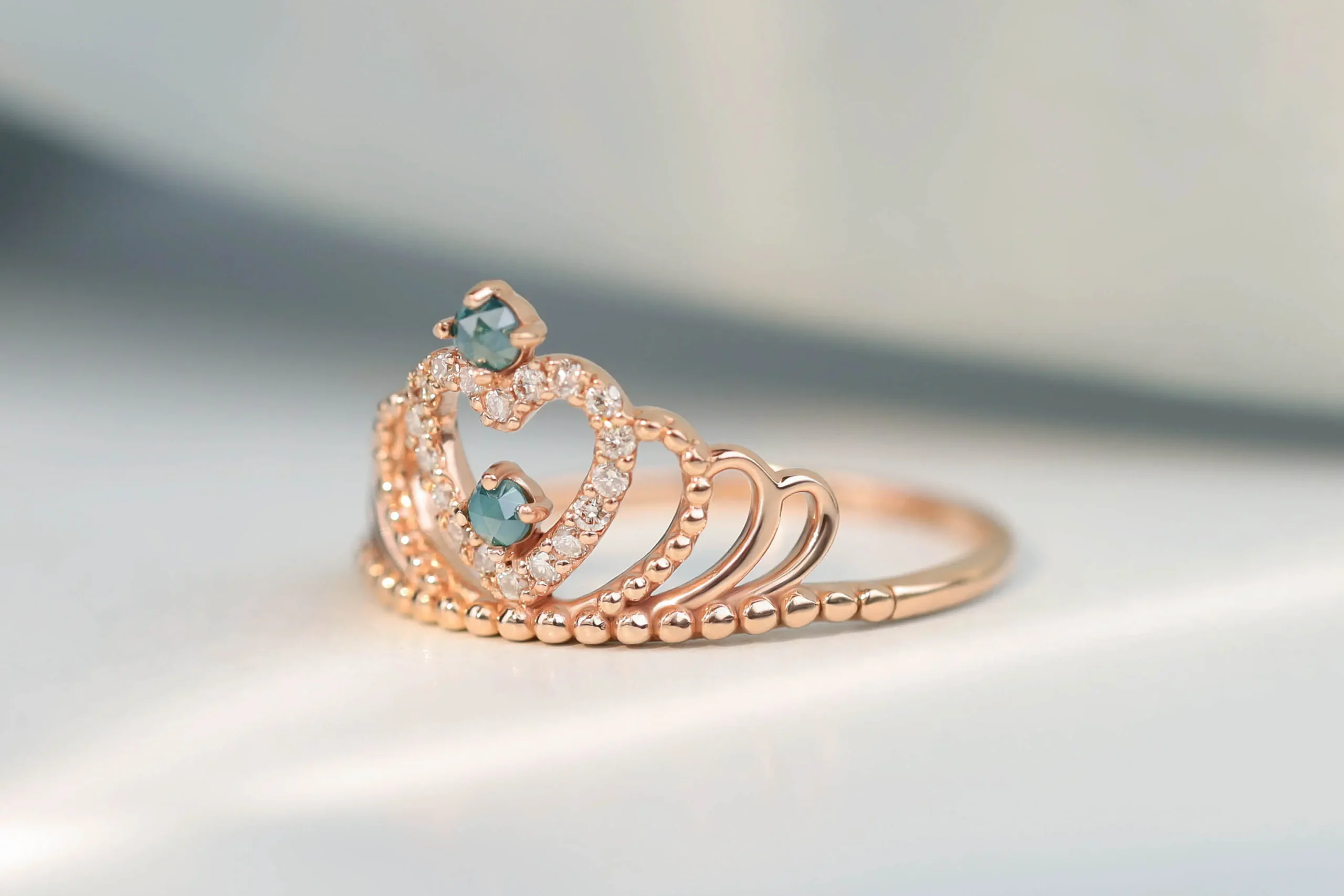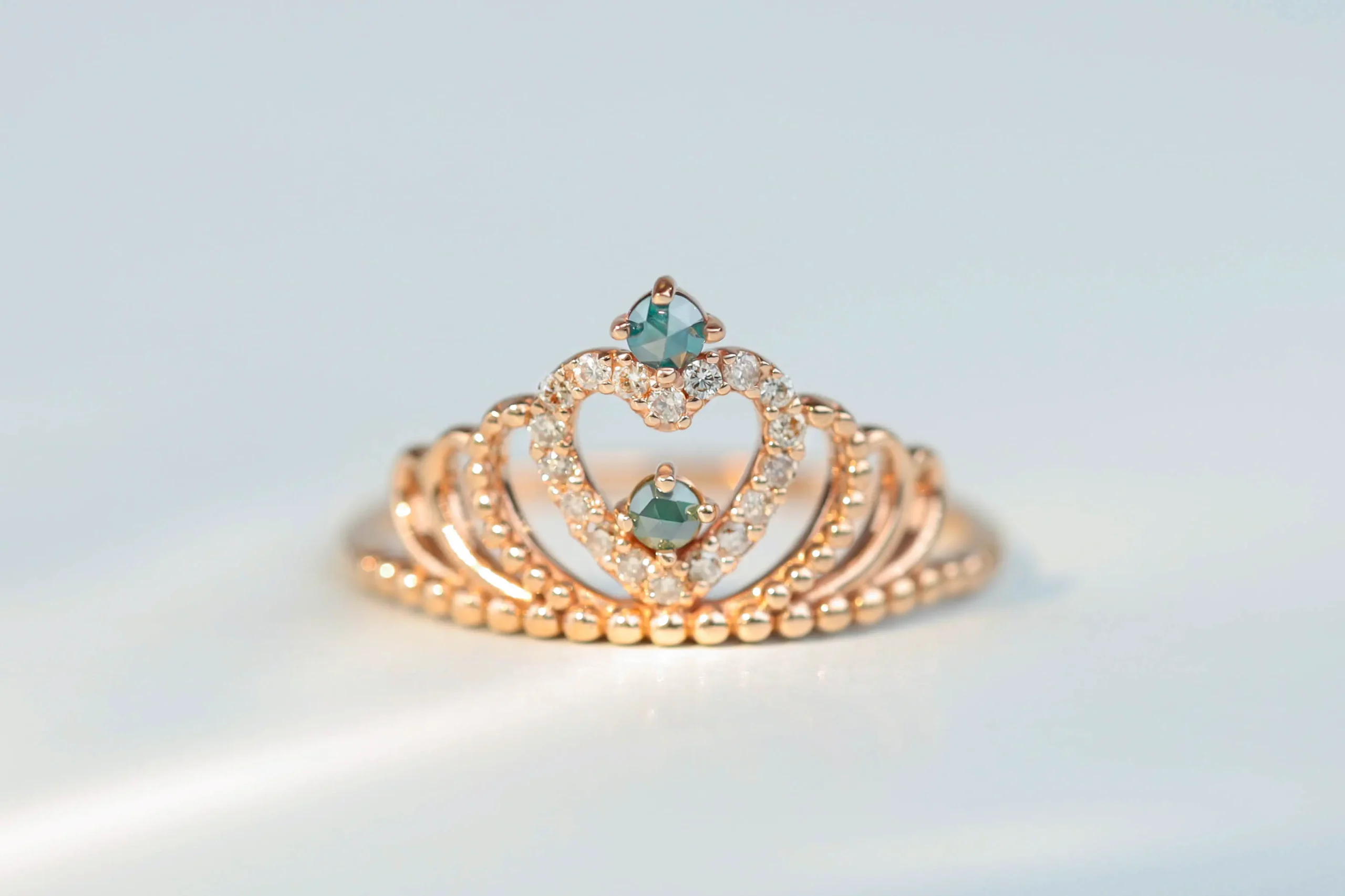 Кольцо из золота с 2 синими бриллиантами весом 0,10 карат; 18 бриллиантами в огранке «круглая» весом 0,08 карат.