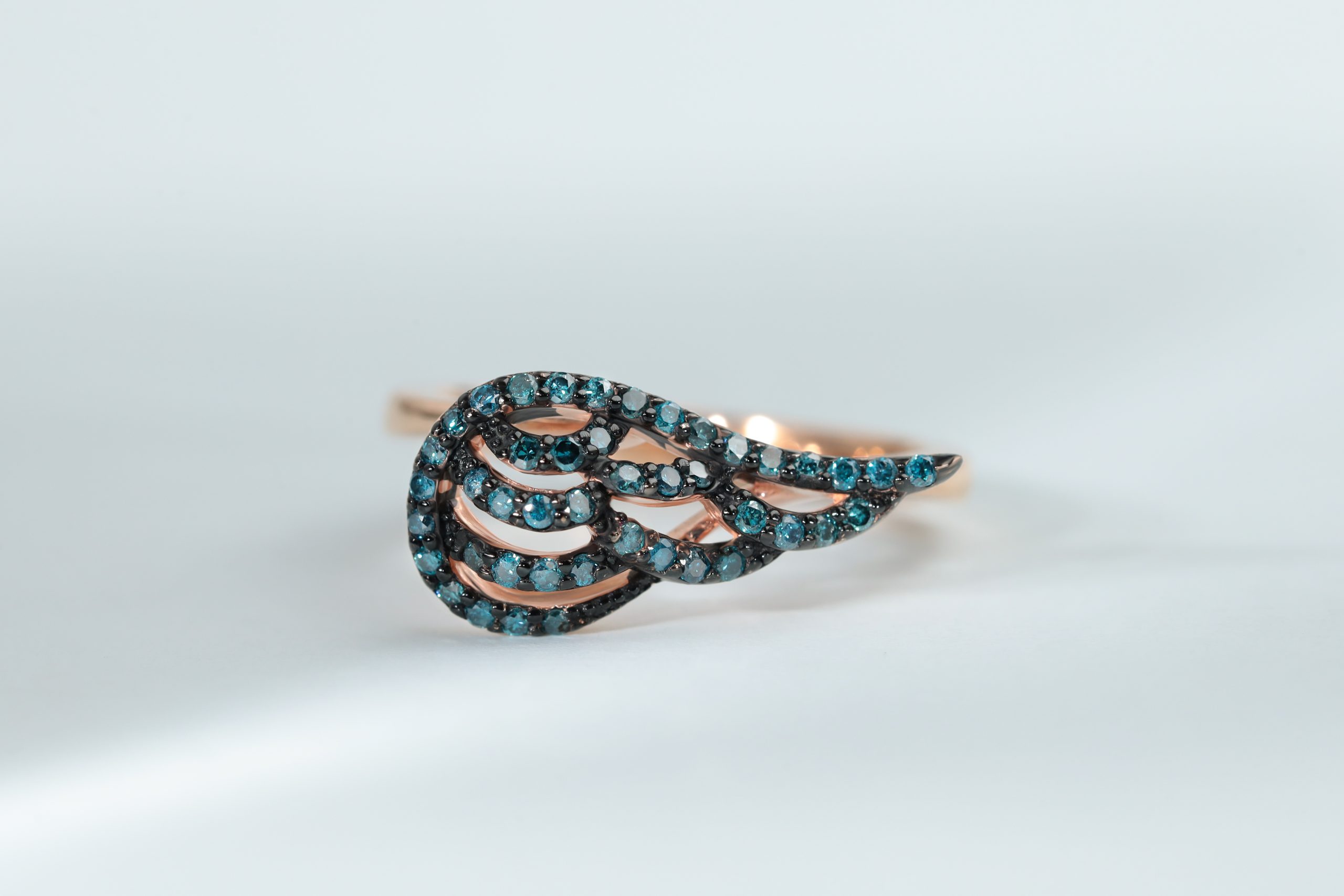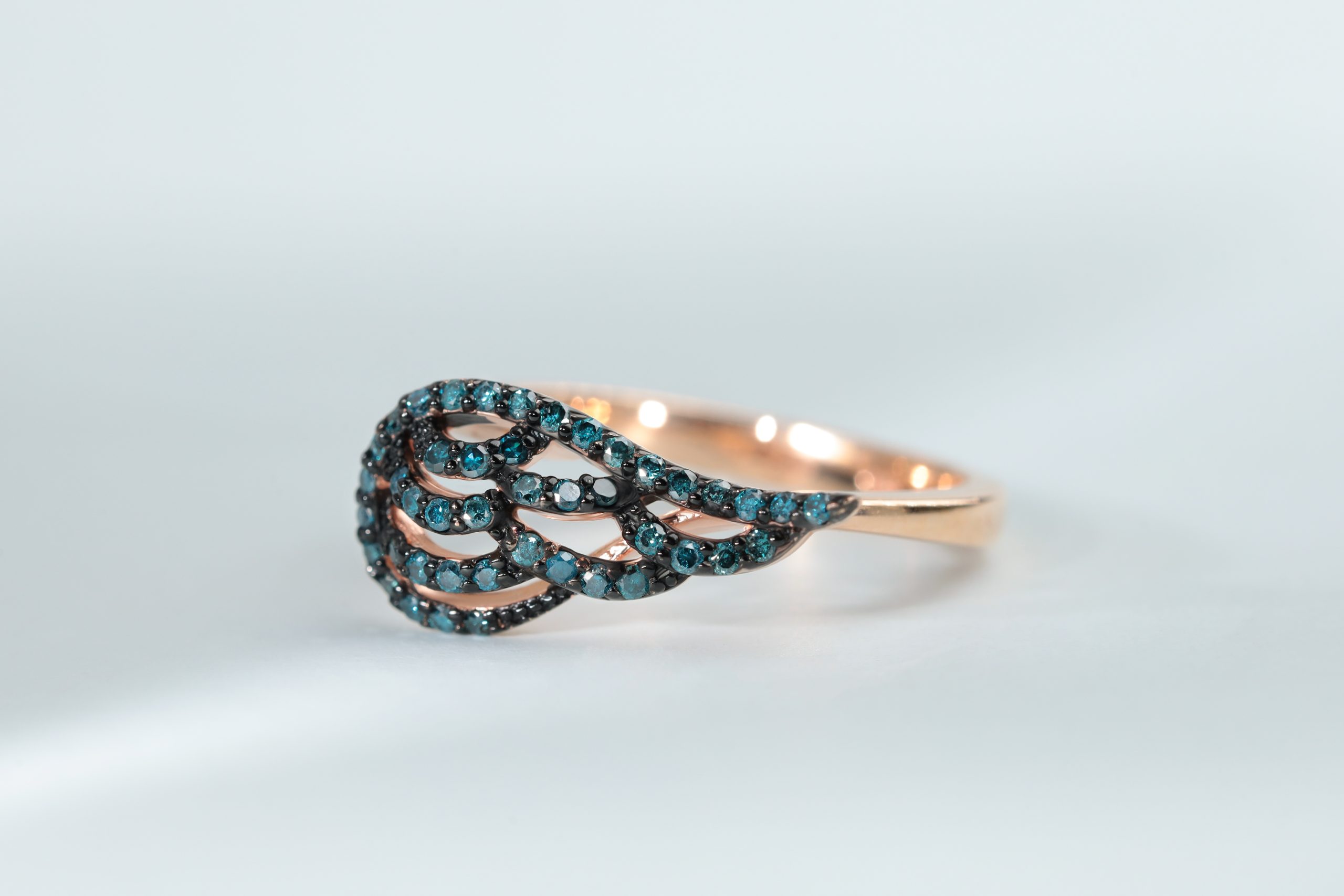 Кольцо из золота с 41 синим бриллиантом весом 0,30 карат.