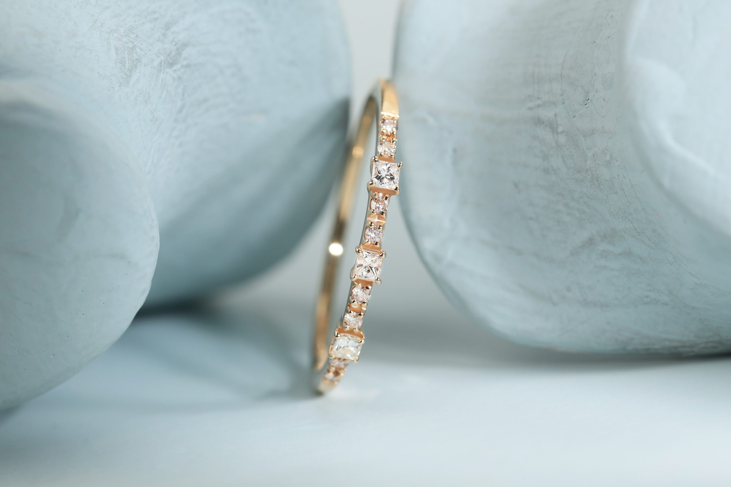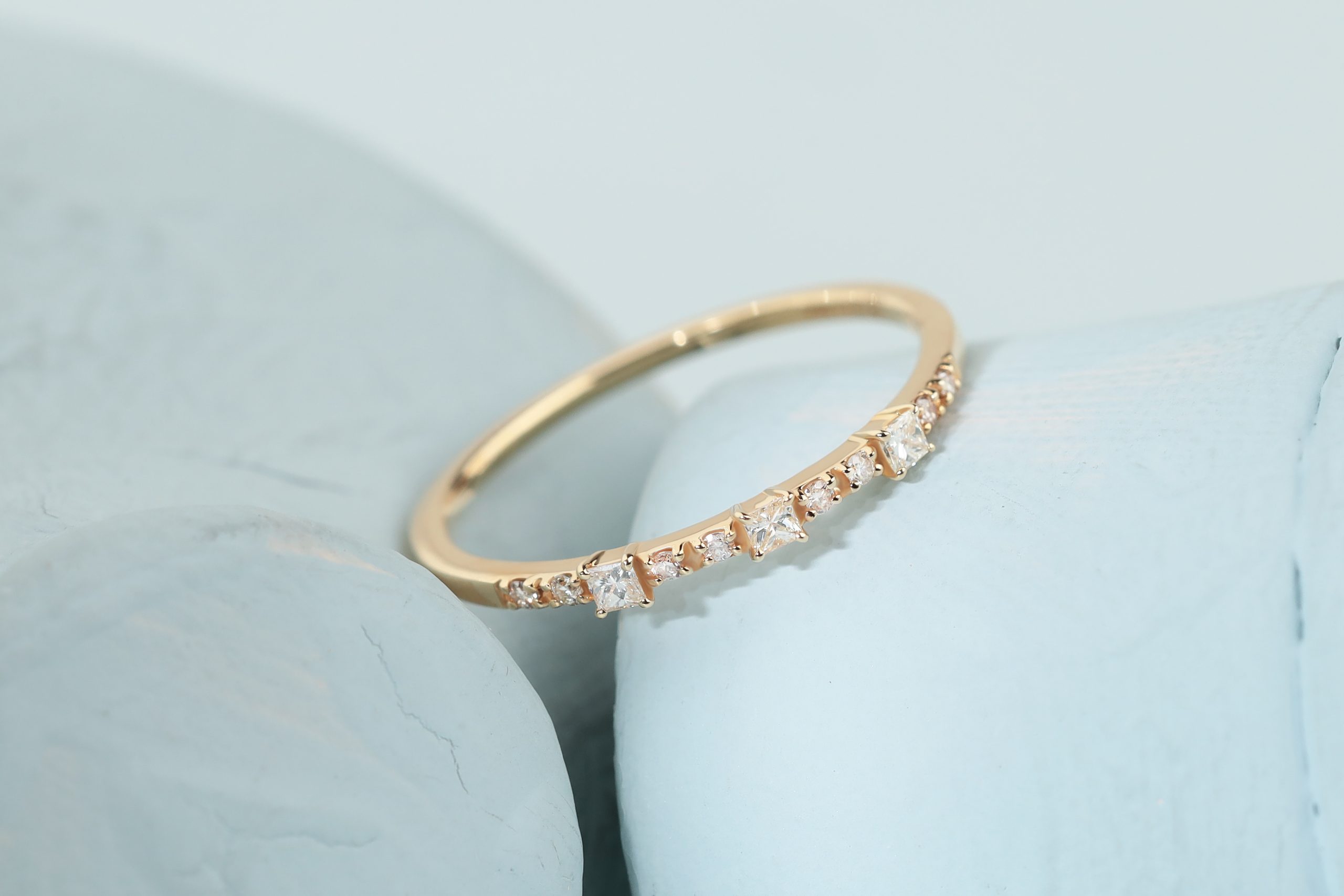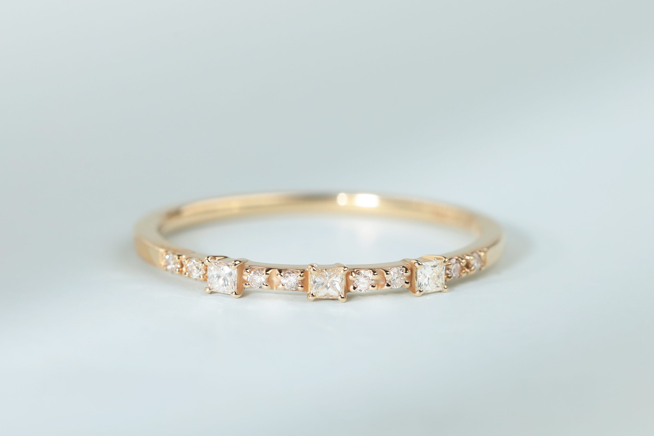 Кольцо из золота с 11 бриллиантами в огранке «круглая» весом 0,05 карат, цвет 3, чистота 7.