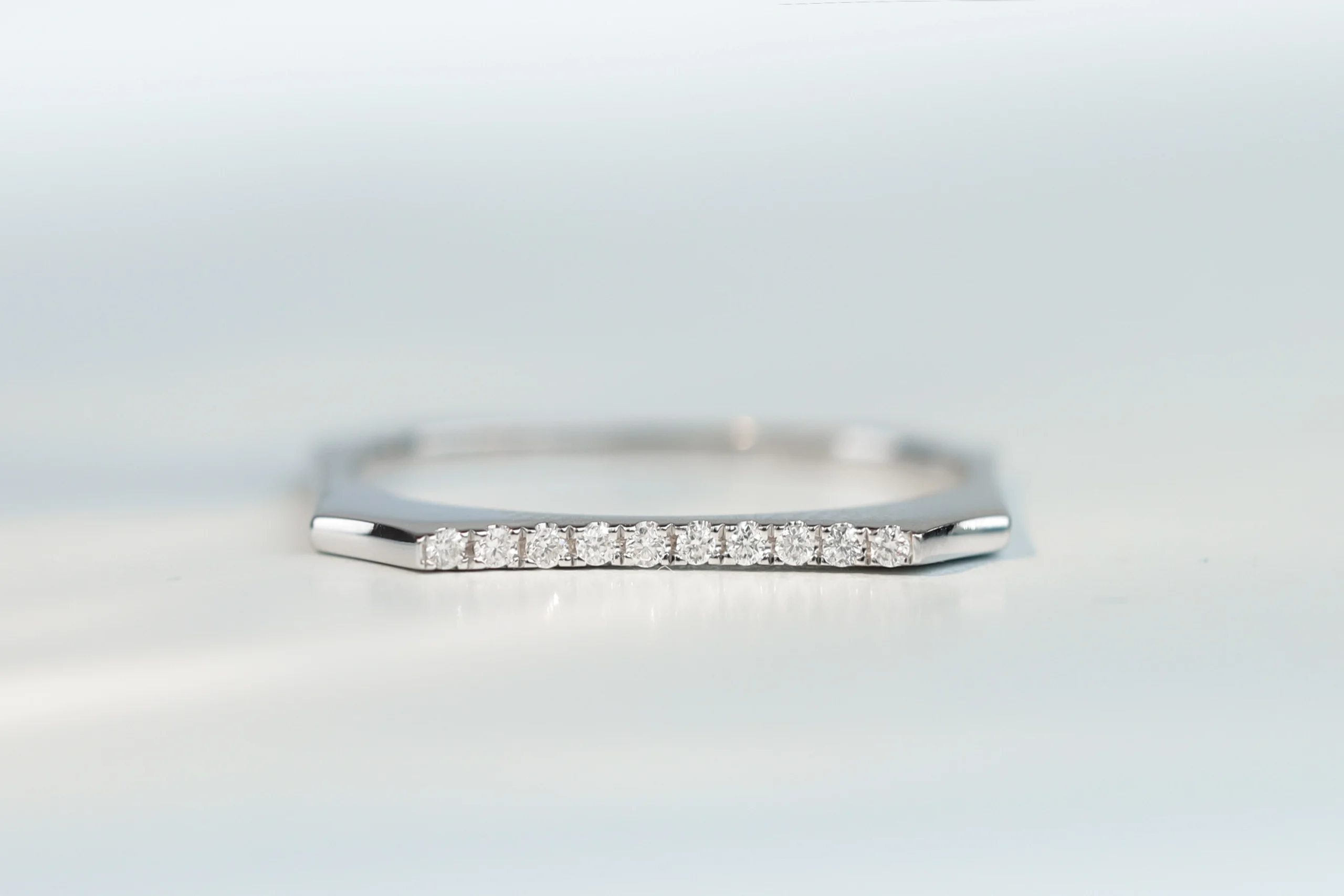 Кольцо из золота с 10 бриллиантами в огранке «круглая» весом 0,05 карат, цвет 3, чистота 5.