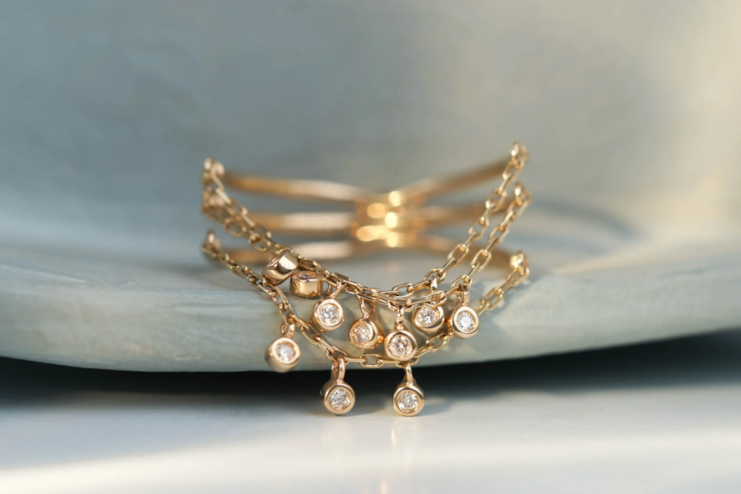 Кольцо из золота с 10 бриллиантами в огранке «круглая» весом 0,05 карат, цвет 5, чистота 5.
