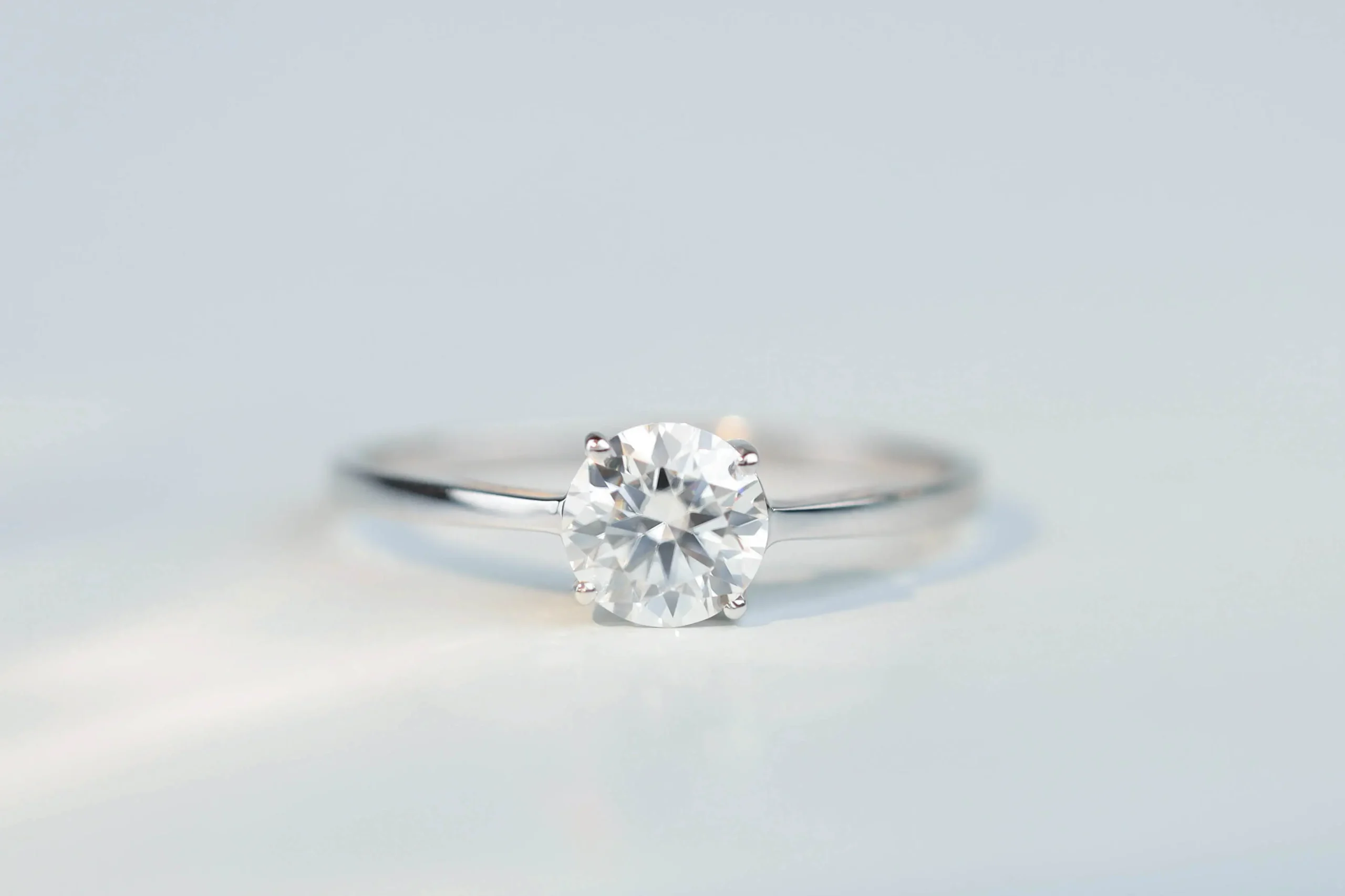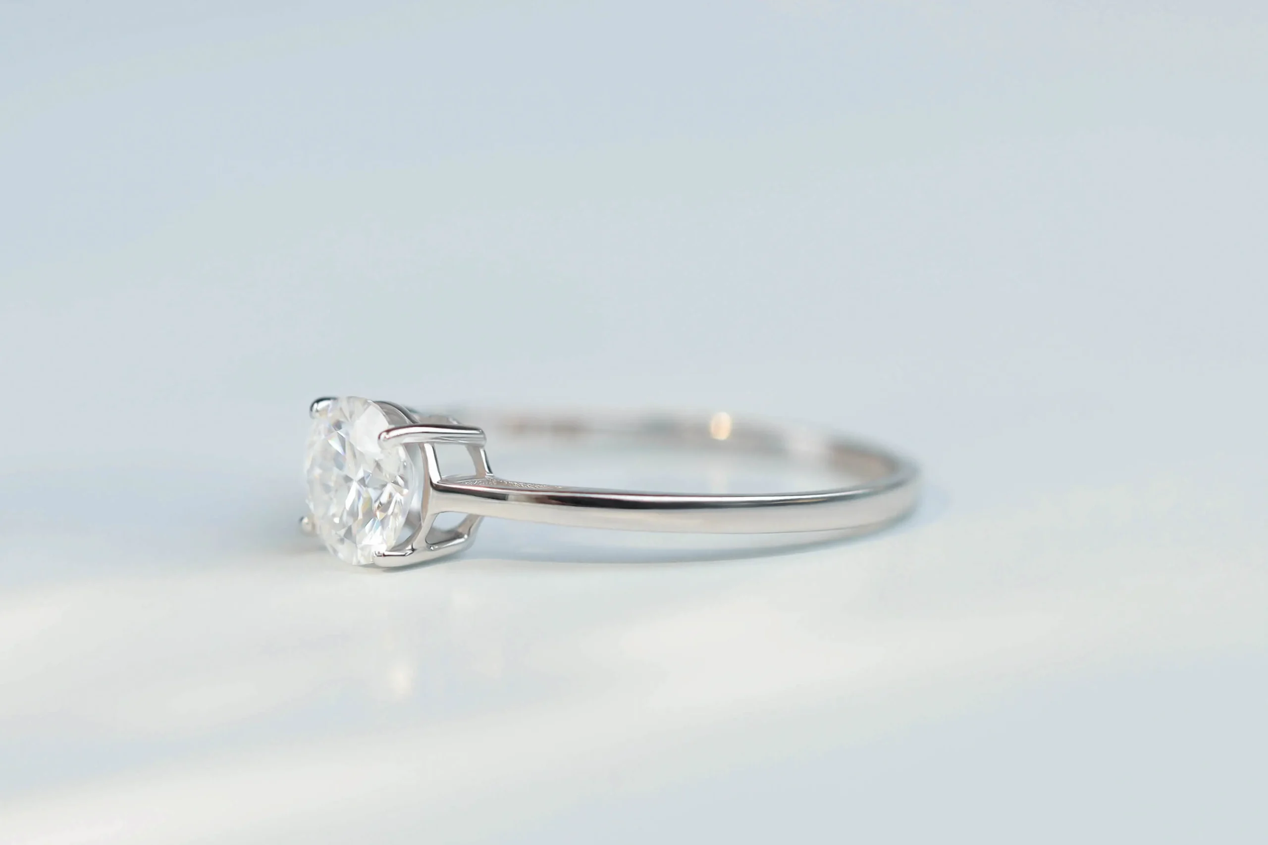 Кольцо из золота с 1 муассанитом в огранке «круглая» весом 0,80 карат.