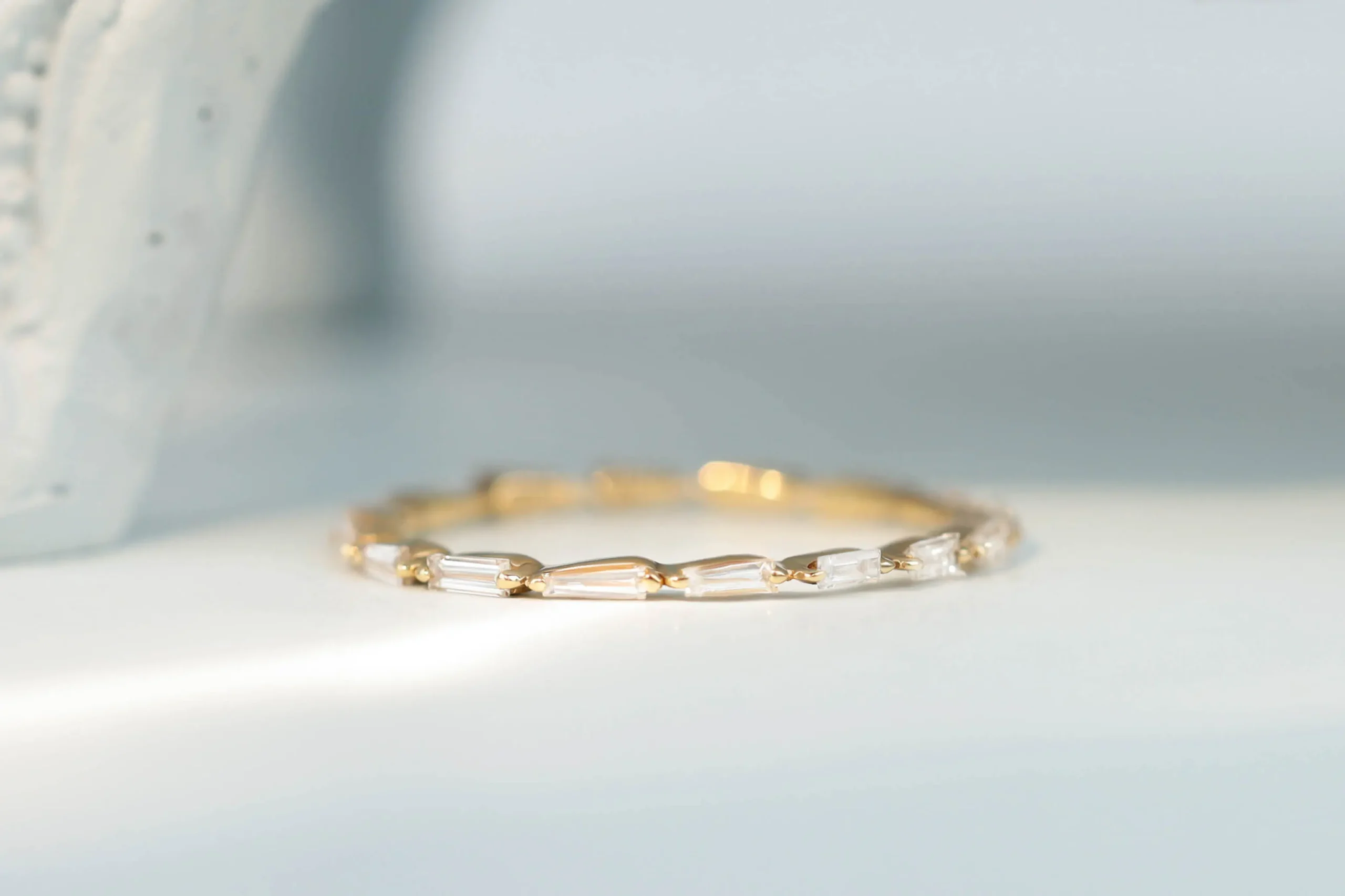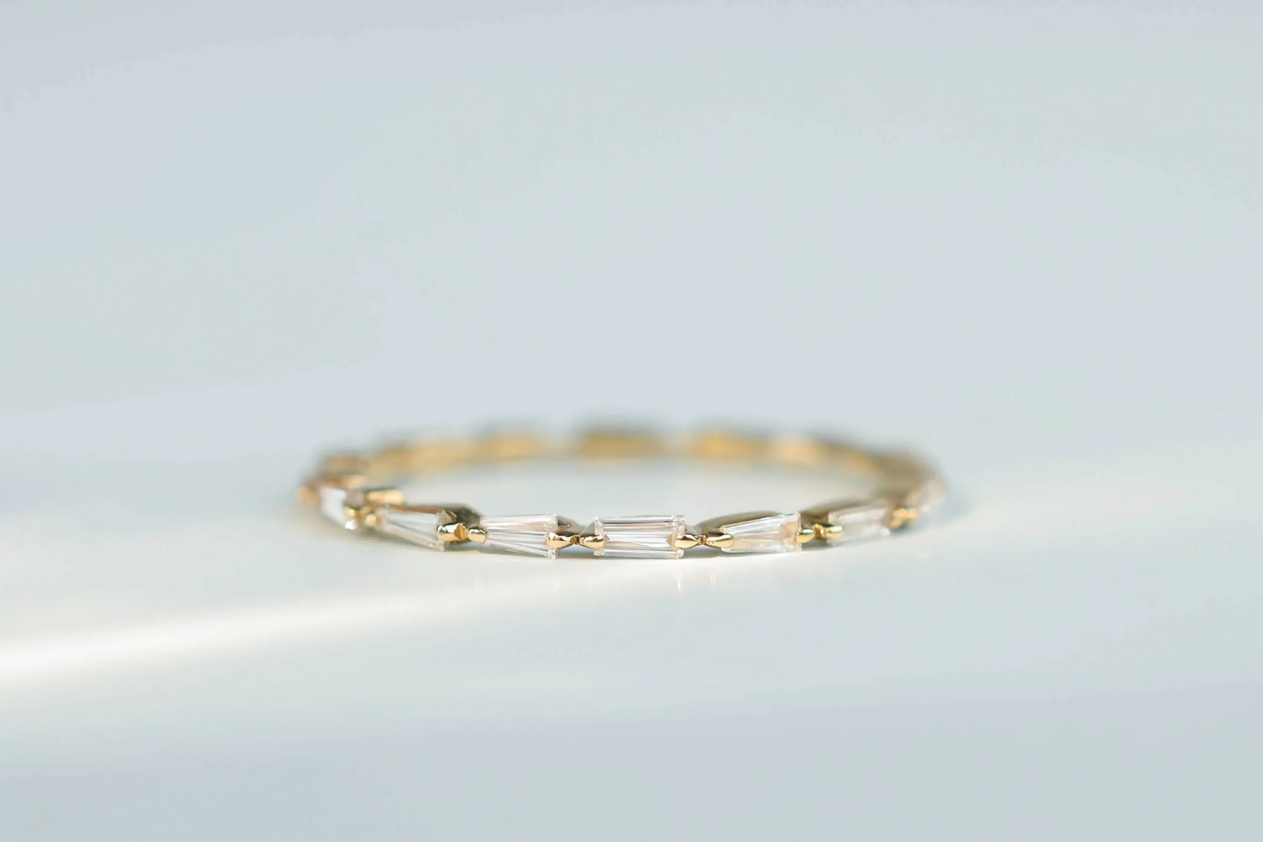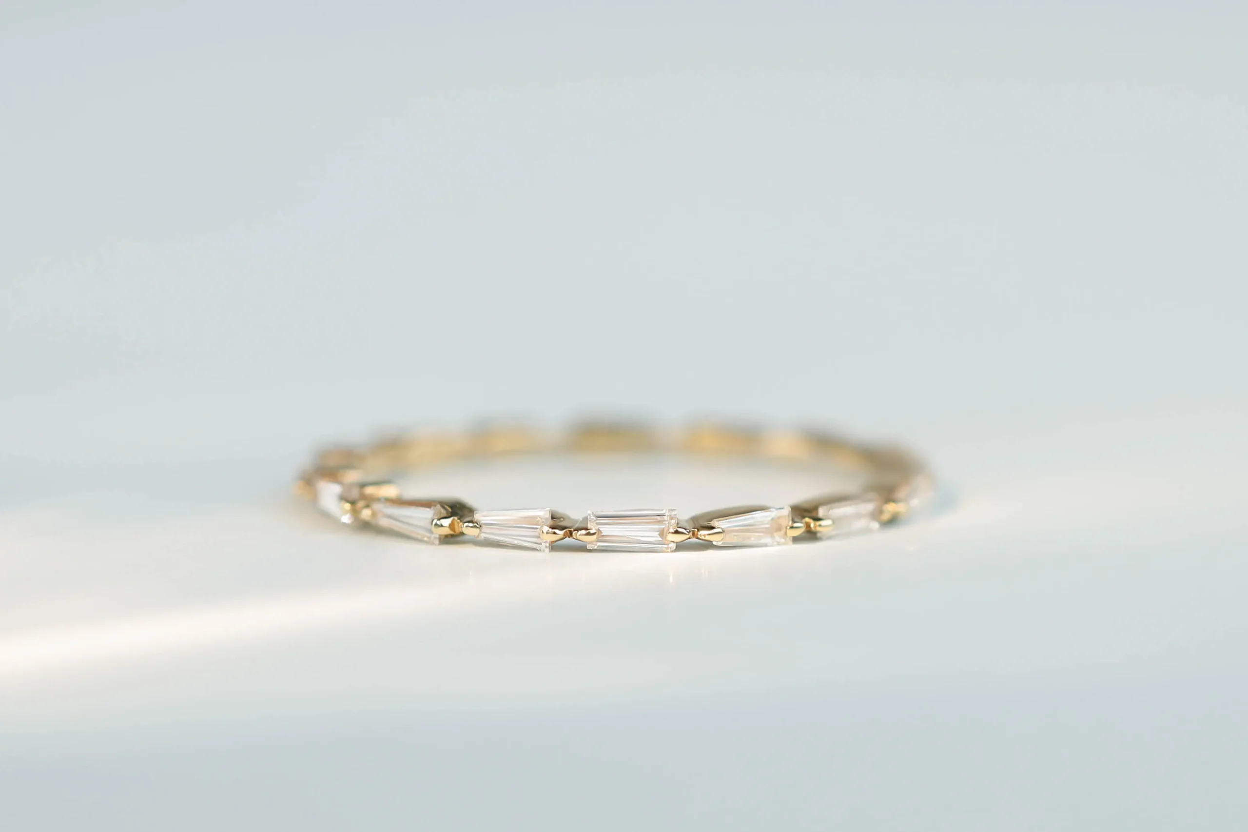 Золотое кольцо общим весом 0,96 гр с 16 бриллиантами в огранке «багет», 0,51 кт, цвет 4, чистота 5.