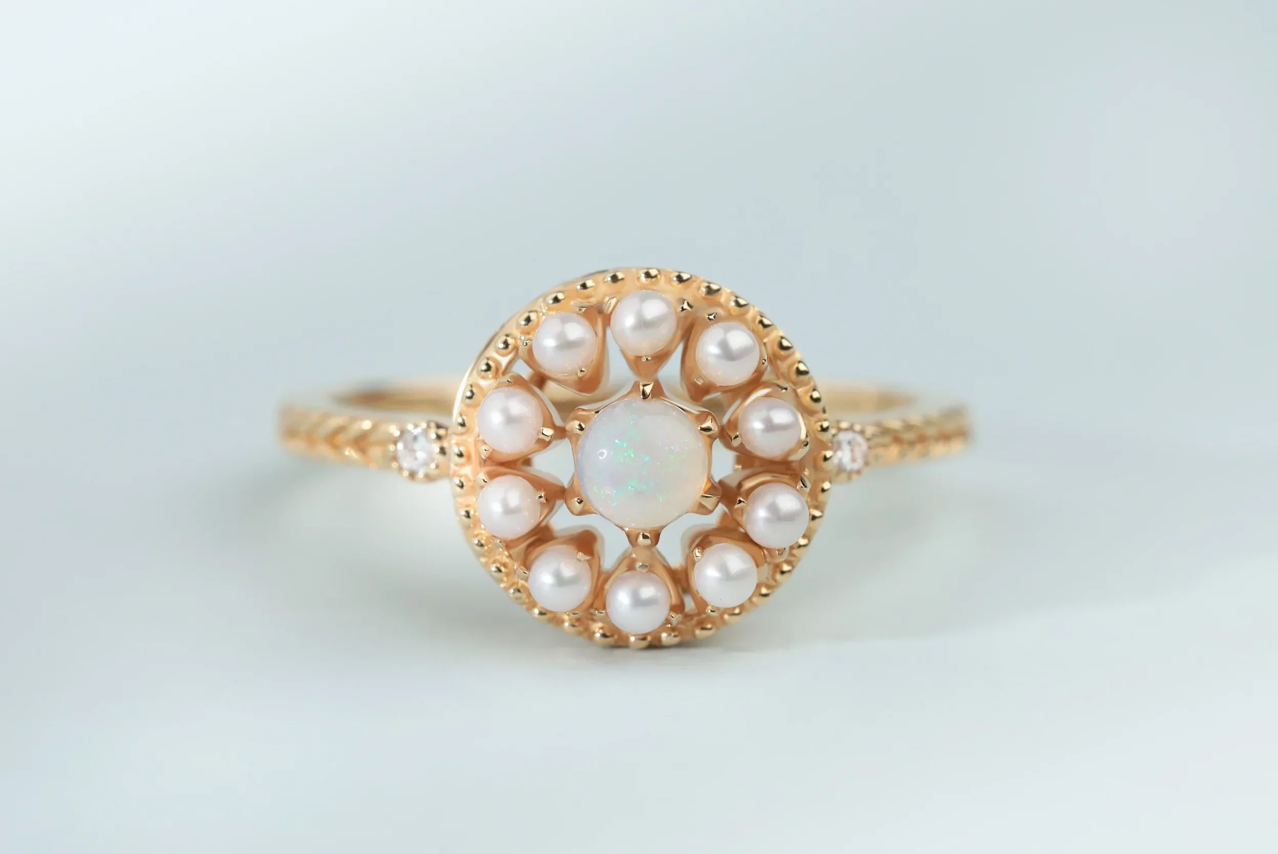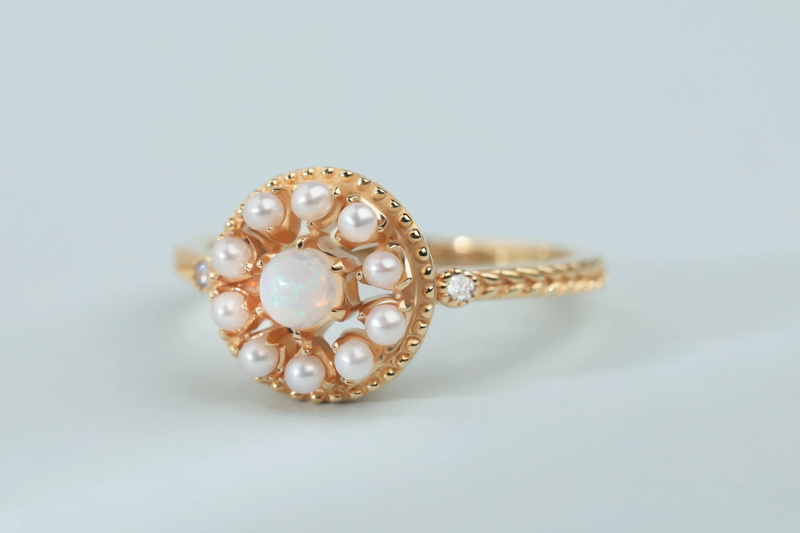 Главная Кольца Кольцо c опалом, жемчугом и бриллиантами