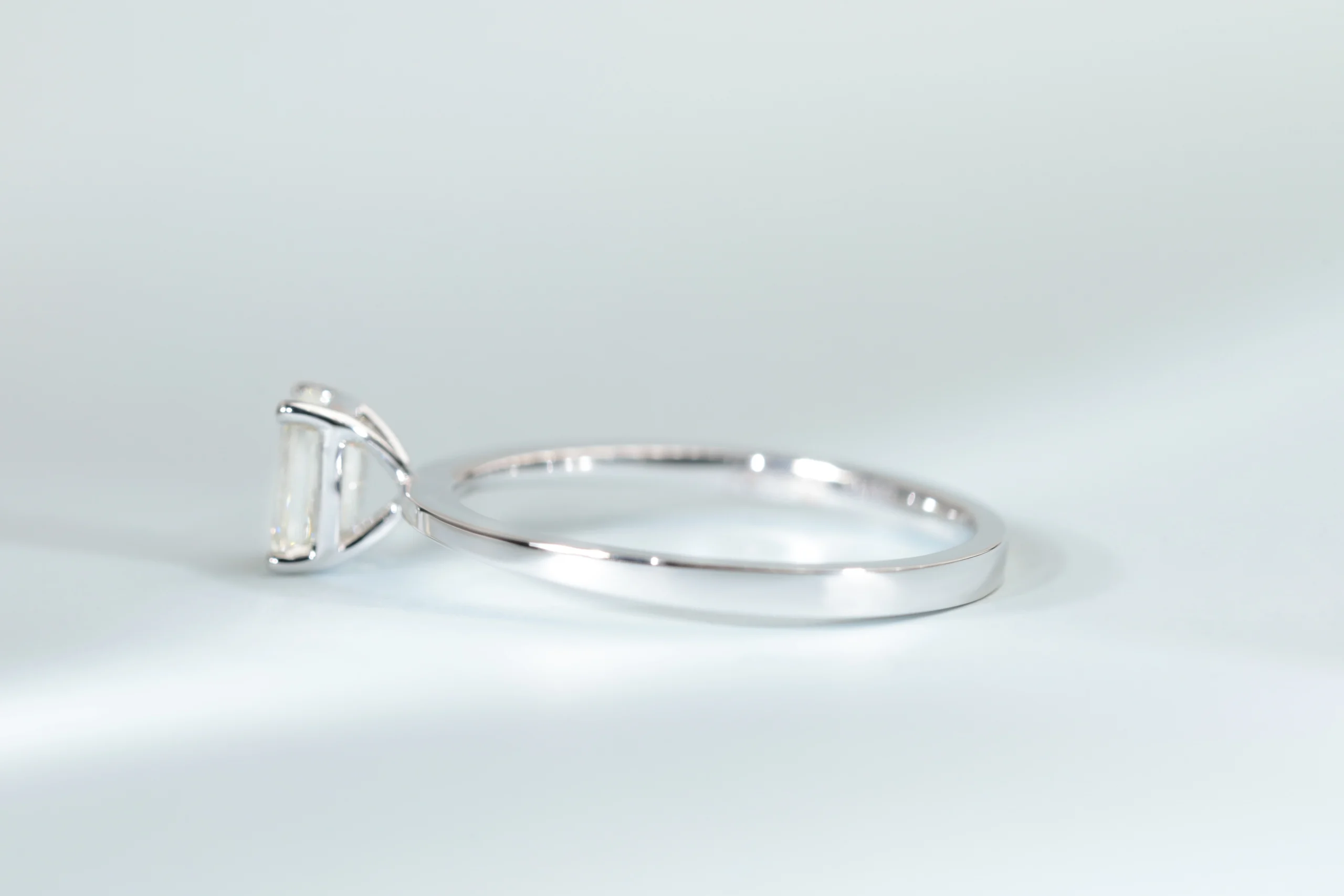 Намекнуть о подаркеКольцо из золота с 1 бриллиантом в огранке «багет» весом 0,53 карат, цвет 4, чистота 6.