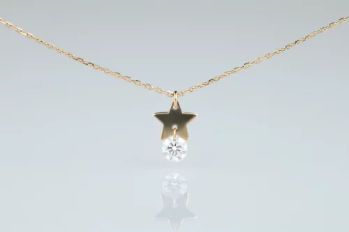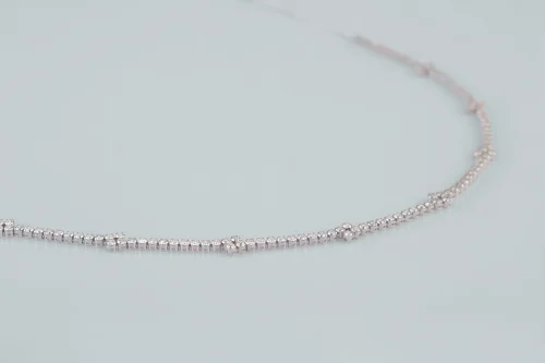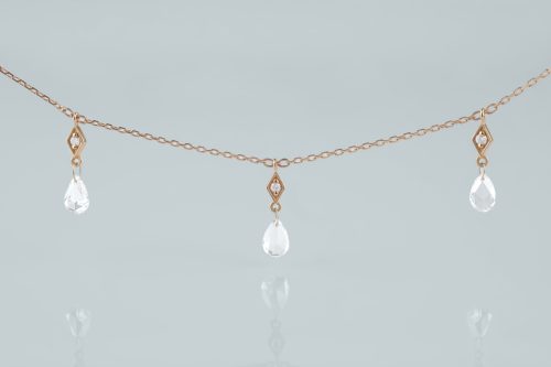 Колье из золота с 7 бриллиантами в огранке «круглая» весом 0,05 карат, цвет 3, чистота 5; 6 бриллиантами в огранке «багет» весом 0,15 карат, цвет 4, чистота 5.