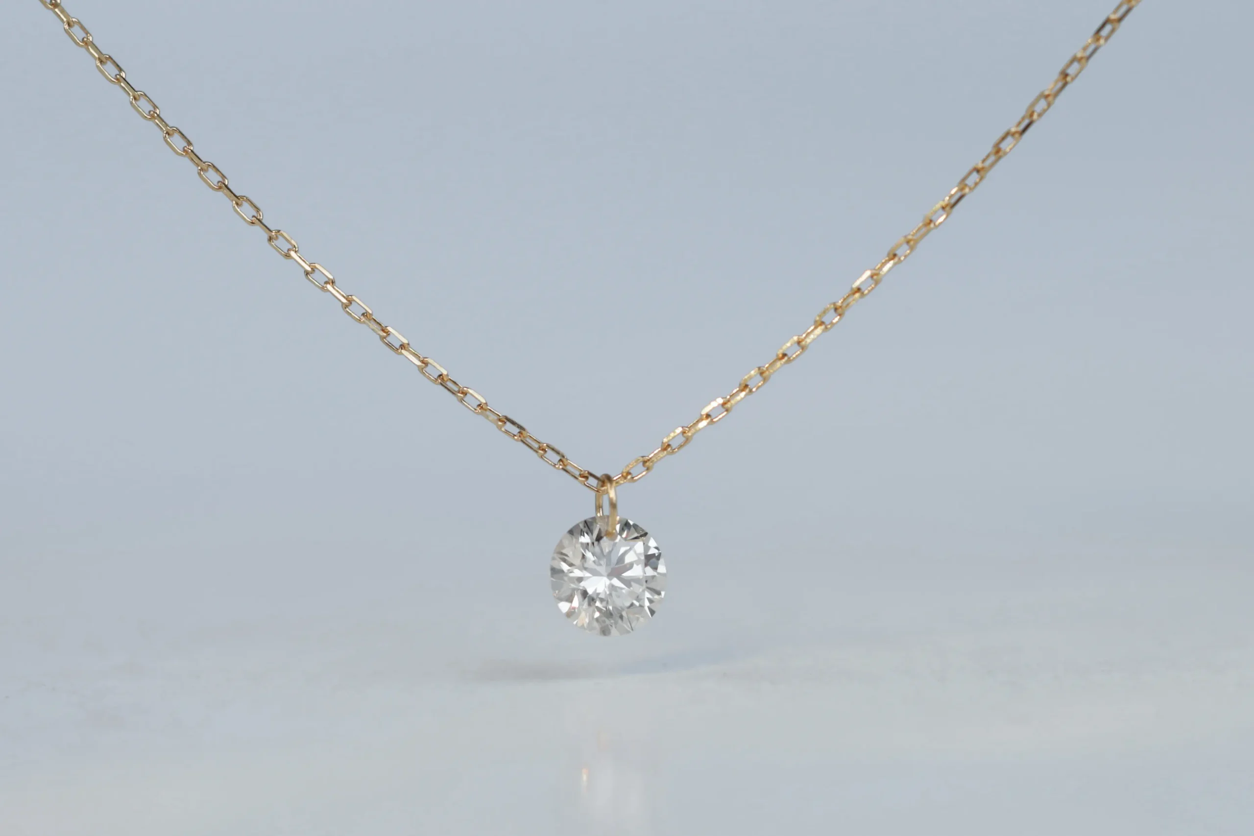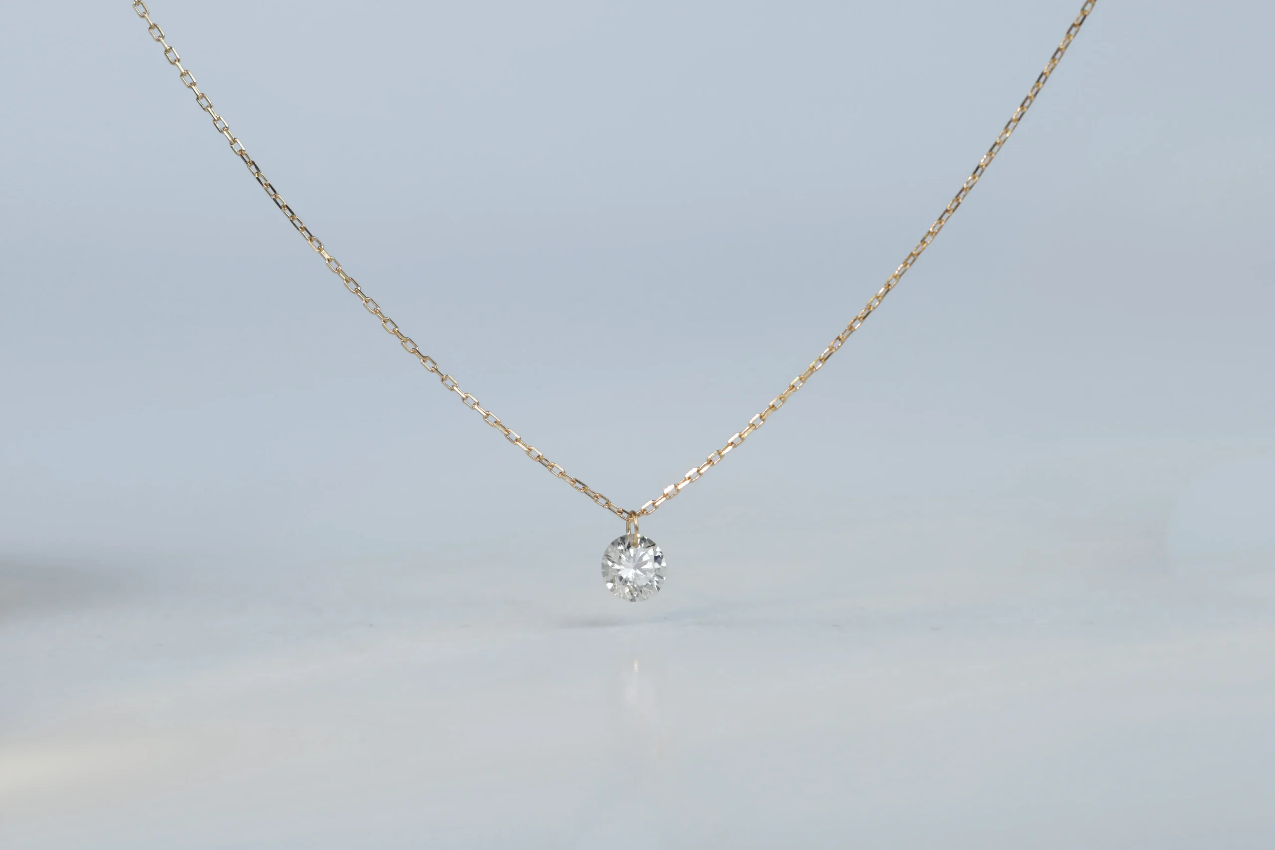 Колье из золота с 1 бриллиантом в огранке «круглая» весом 0,23 карата, цвет 3, чистота 5.