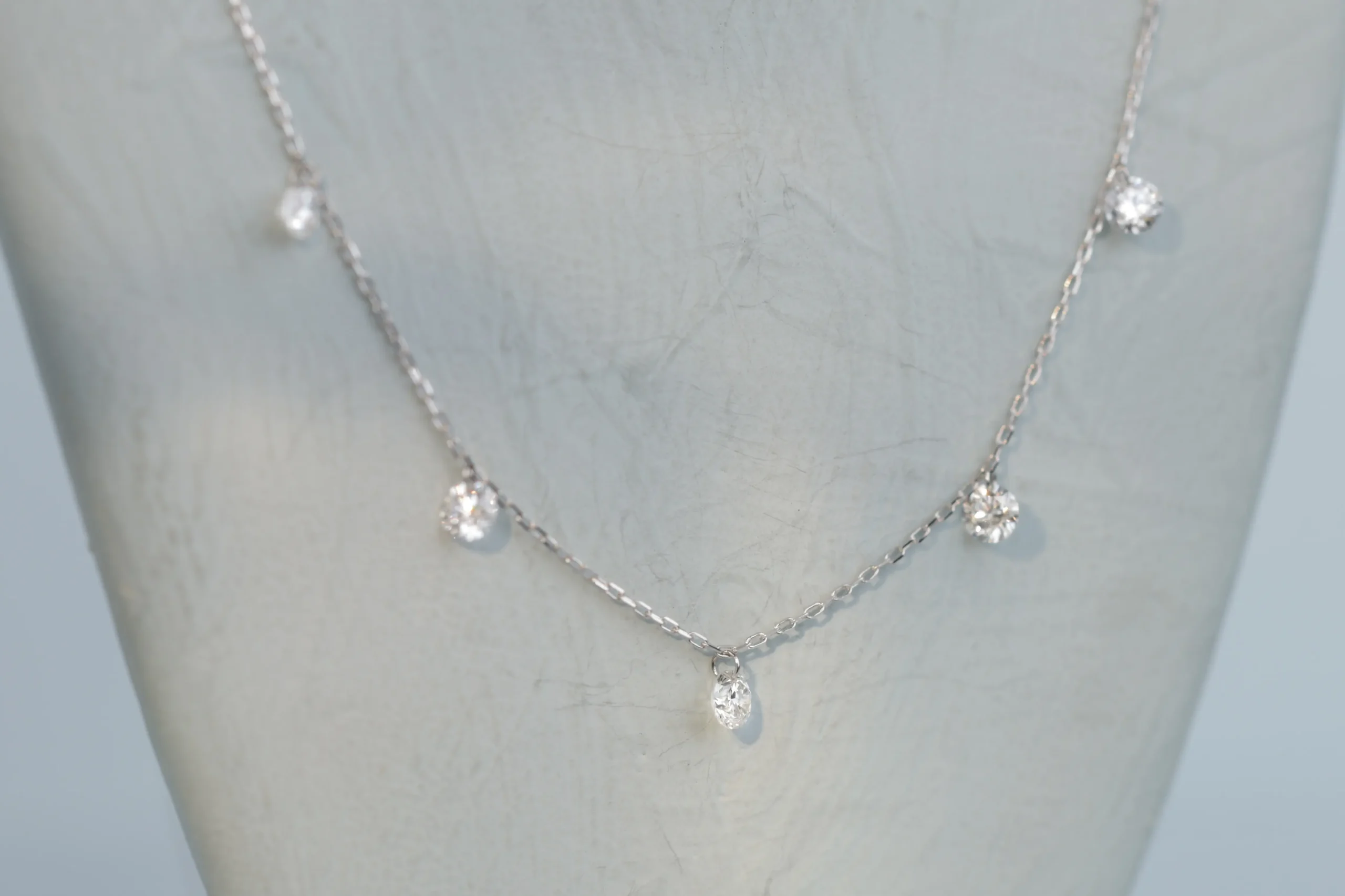 Колье из золота с 5 бриллиантами в огранке «круглая» весом 0, 40 карат, цвет 3, чистота 5.