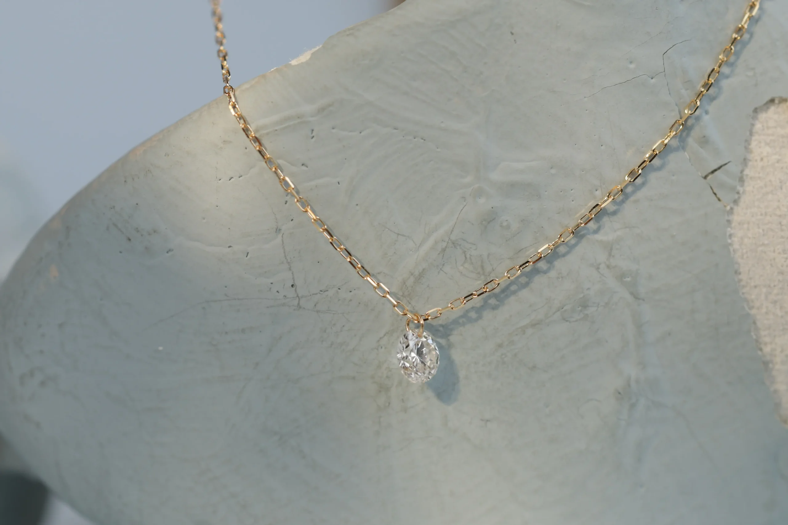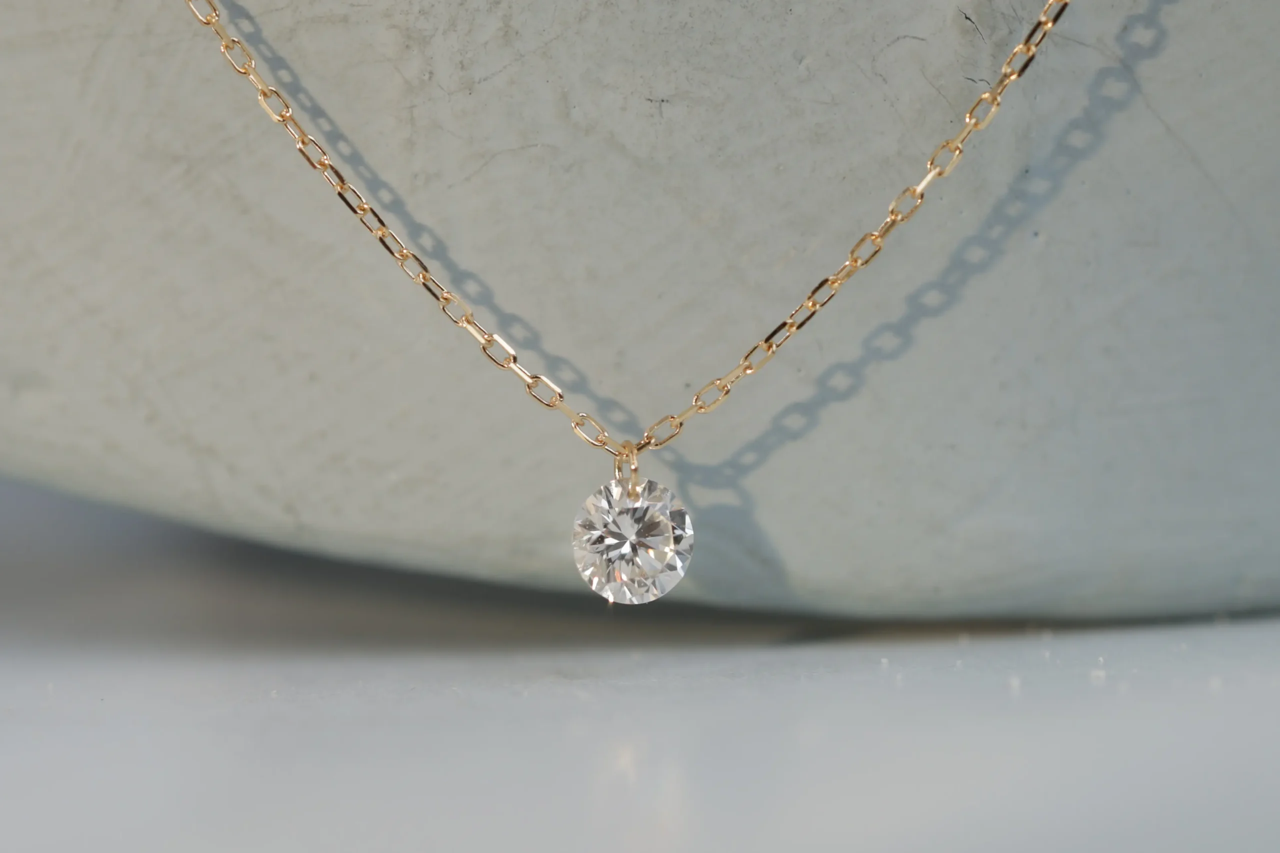 Колье из золота с 1 бриллиантом в огранке «круглая» весом 0,13 карат, цвет 3, чистота 5.