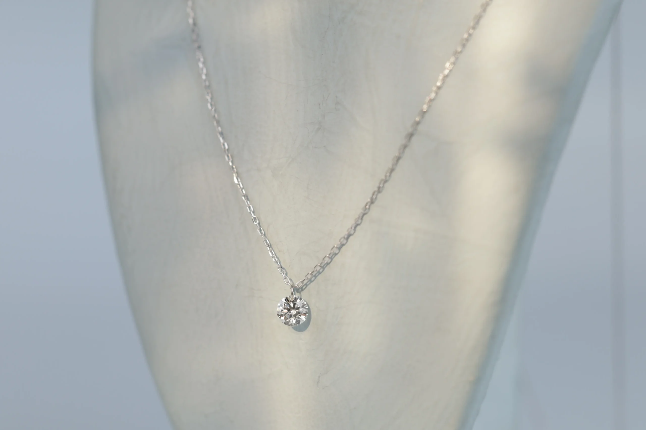 Колье из золота с 1 бриллиантом в огранке «круглая» весом 0,20 карат, цвет 3, чистота 5.