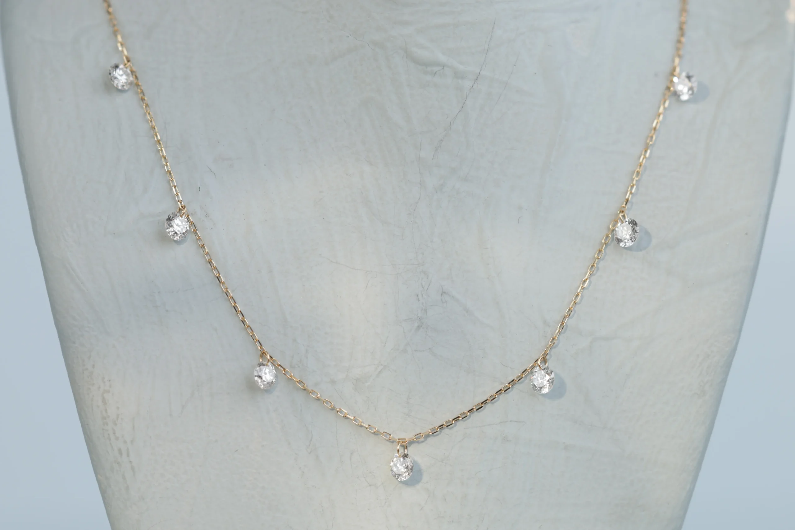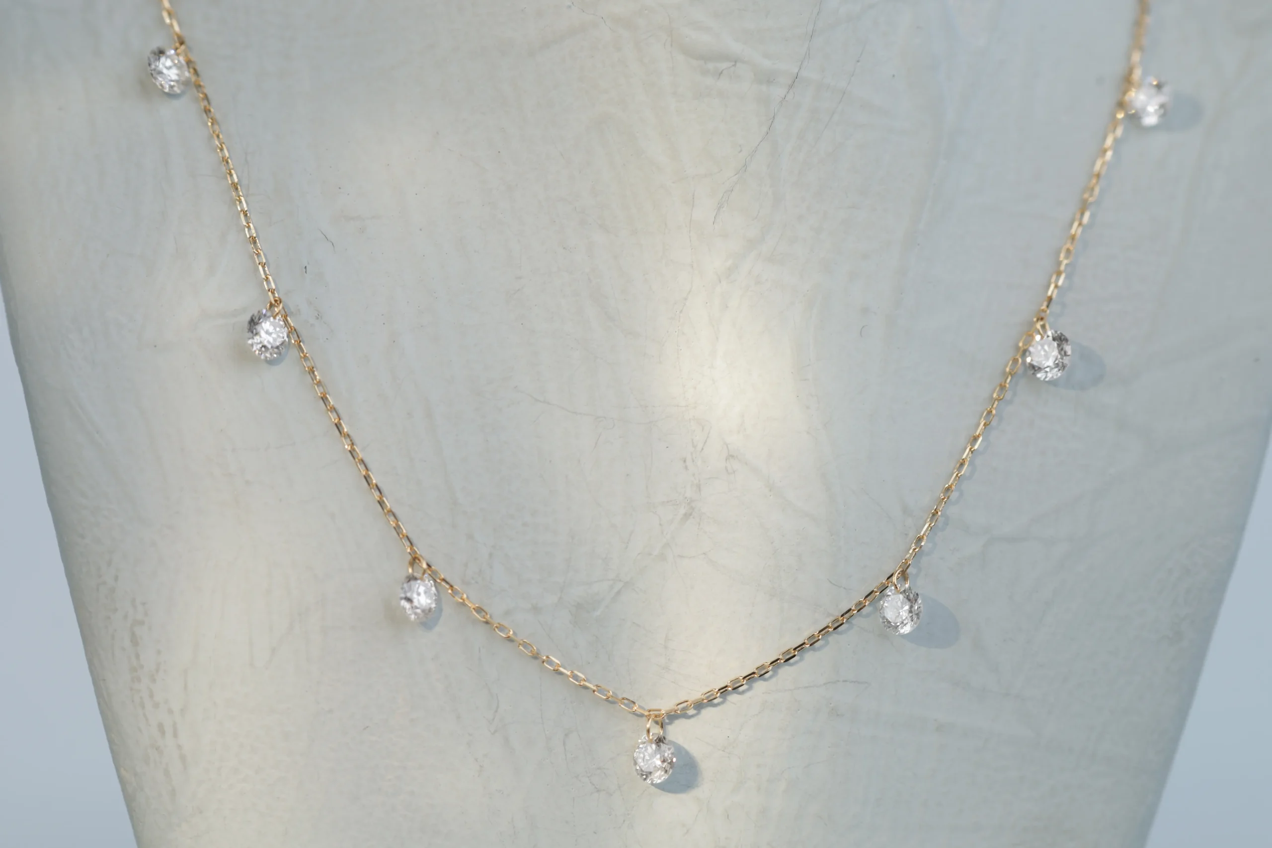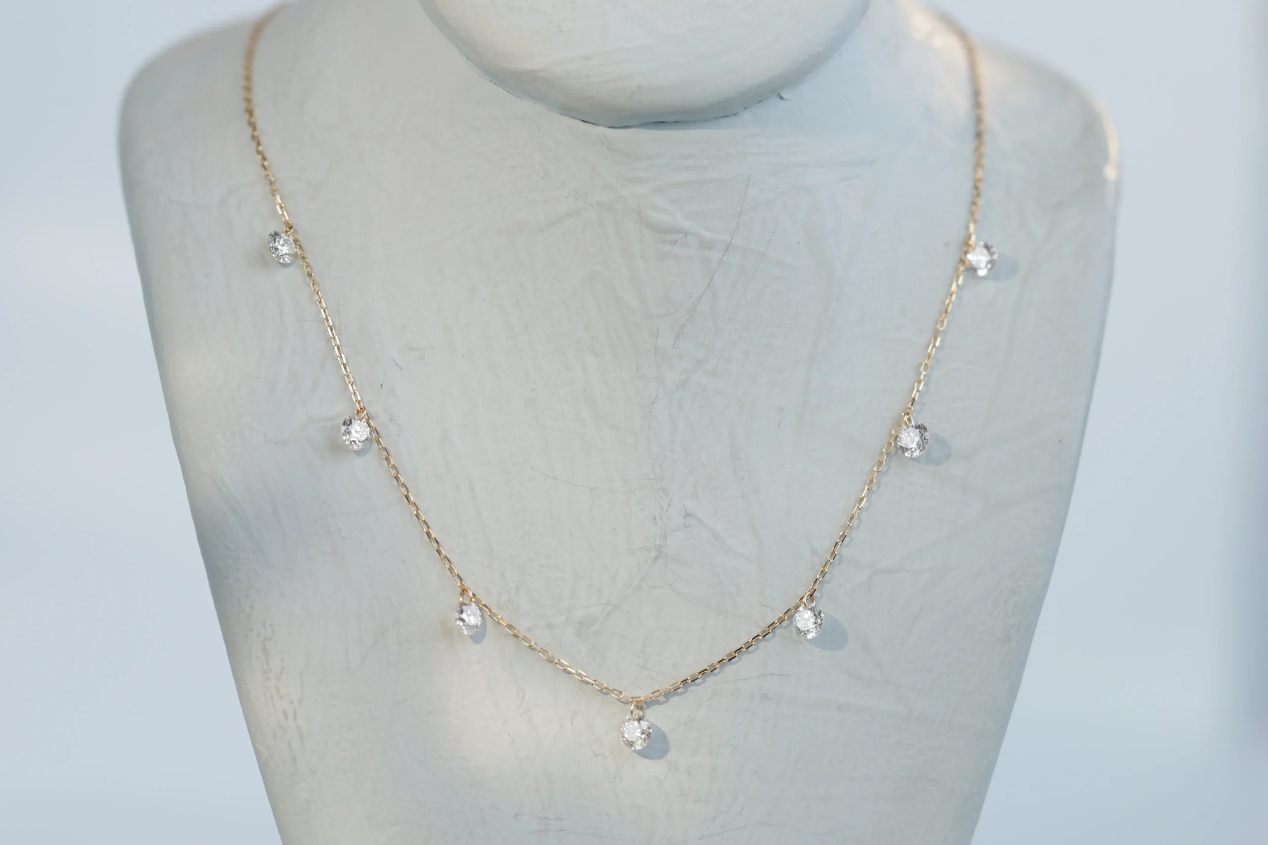 Колье из золота с 7 бриллиантами в огранке «круглая» весом 0, 55 карат, цвет 3, чистота 5.