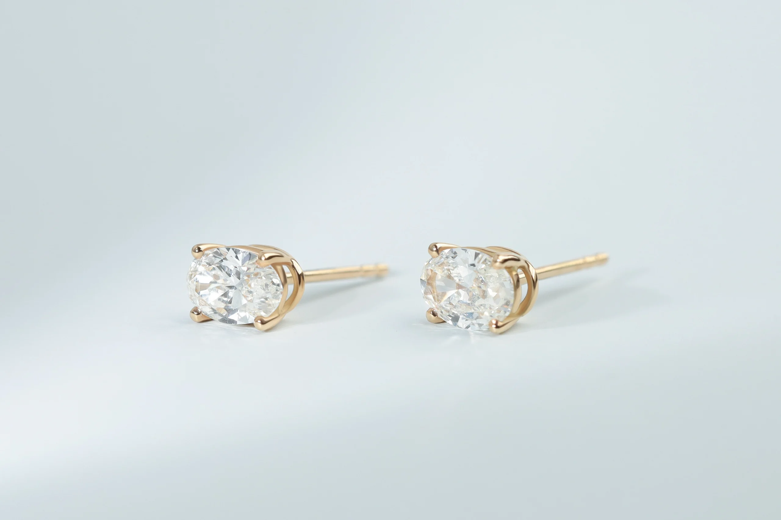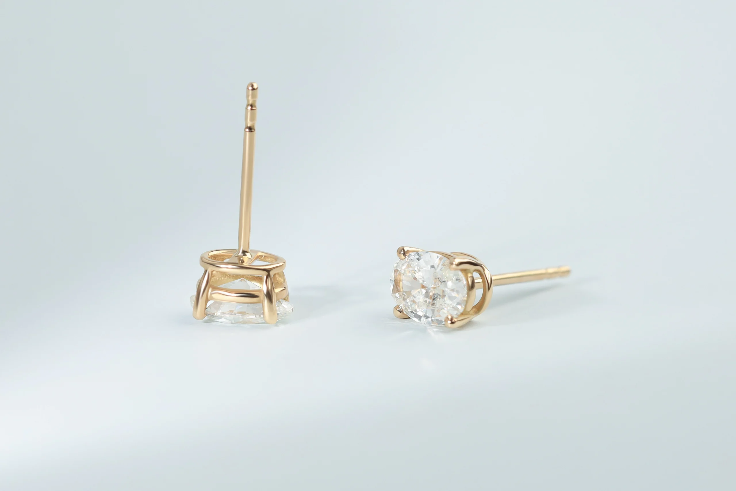 Золотые серьги, весом 0,55 грамм, с 2 бриллиантами в огранке «овал», весом 0,50 кт, цвет 3, чистота 5;