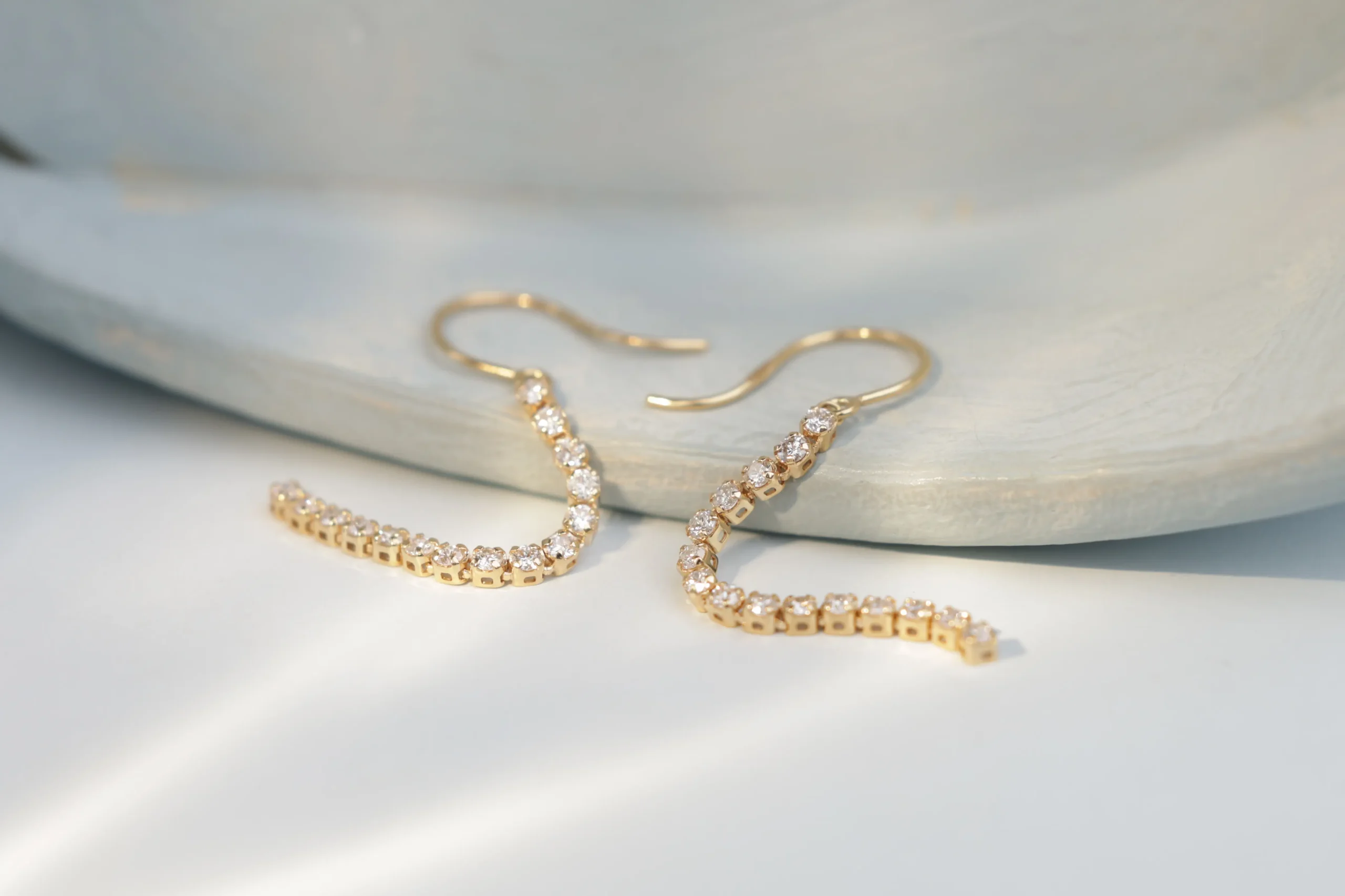 Серьги из золота с 30 бриллиантами в огранке «круглая» весом 0,36 карат, цвет 3, чистота 5.