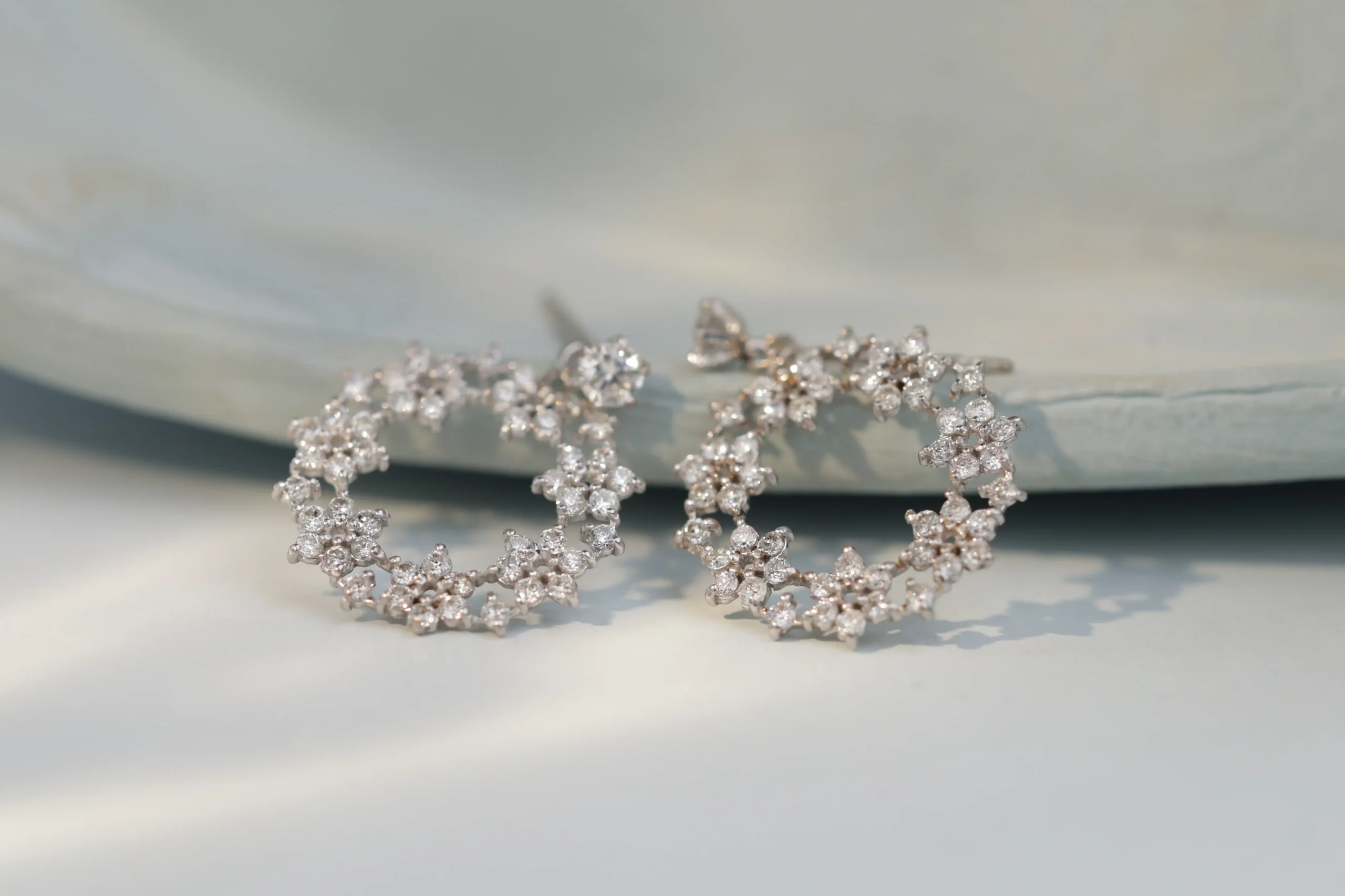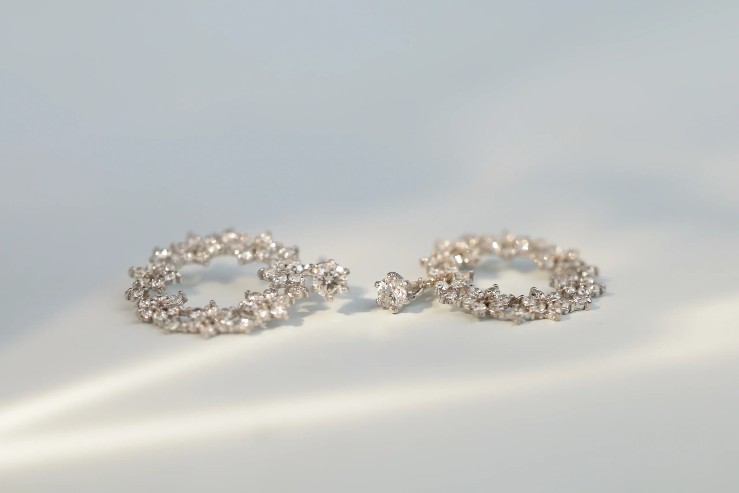 Серьги из золота с 48 бриллиантами в огранке «круглая» весом 0,6 карат, цвет 4, чистота 5.
