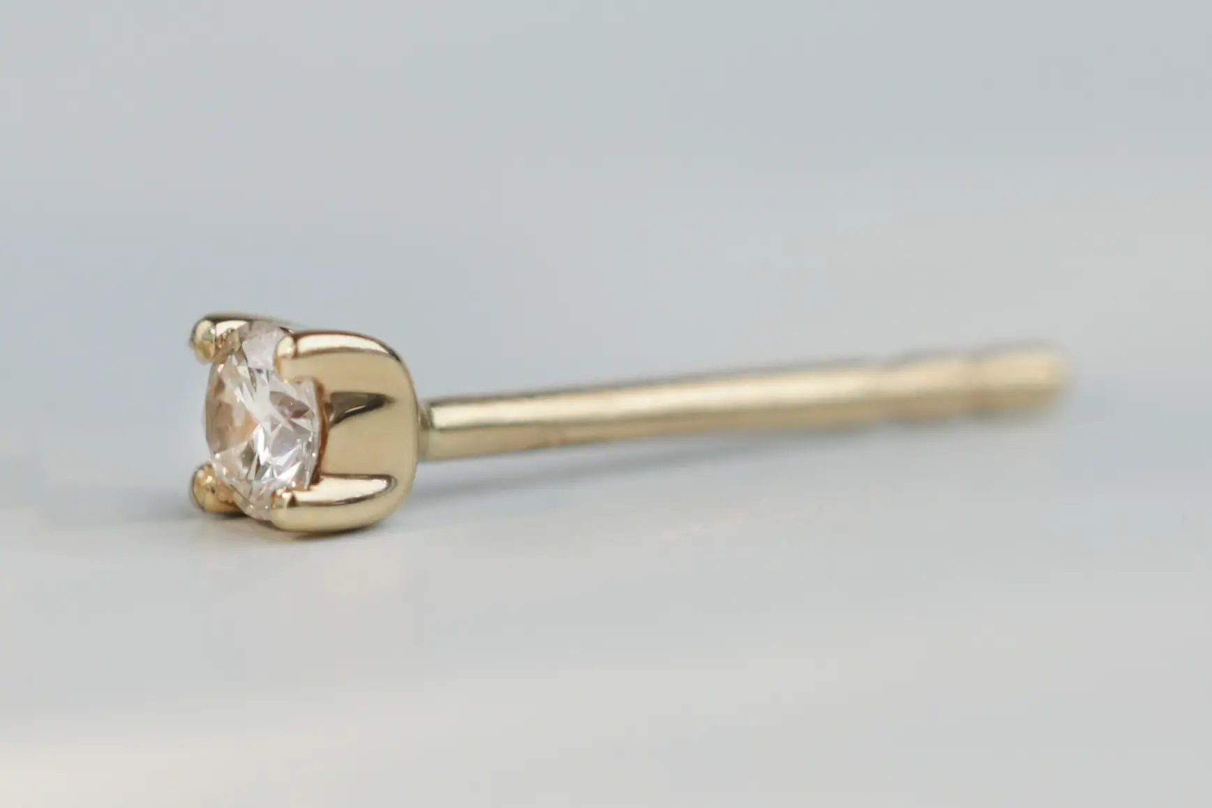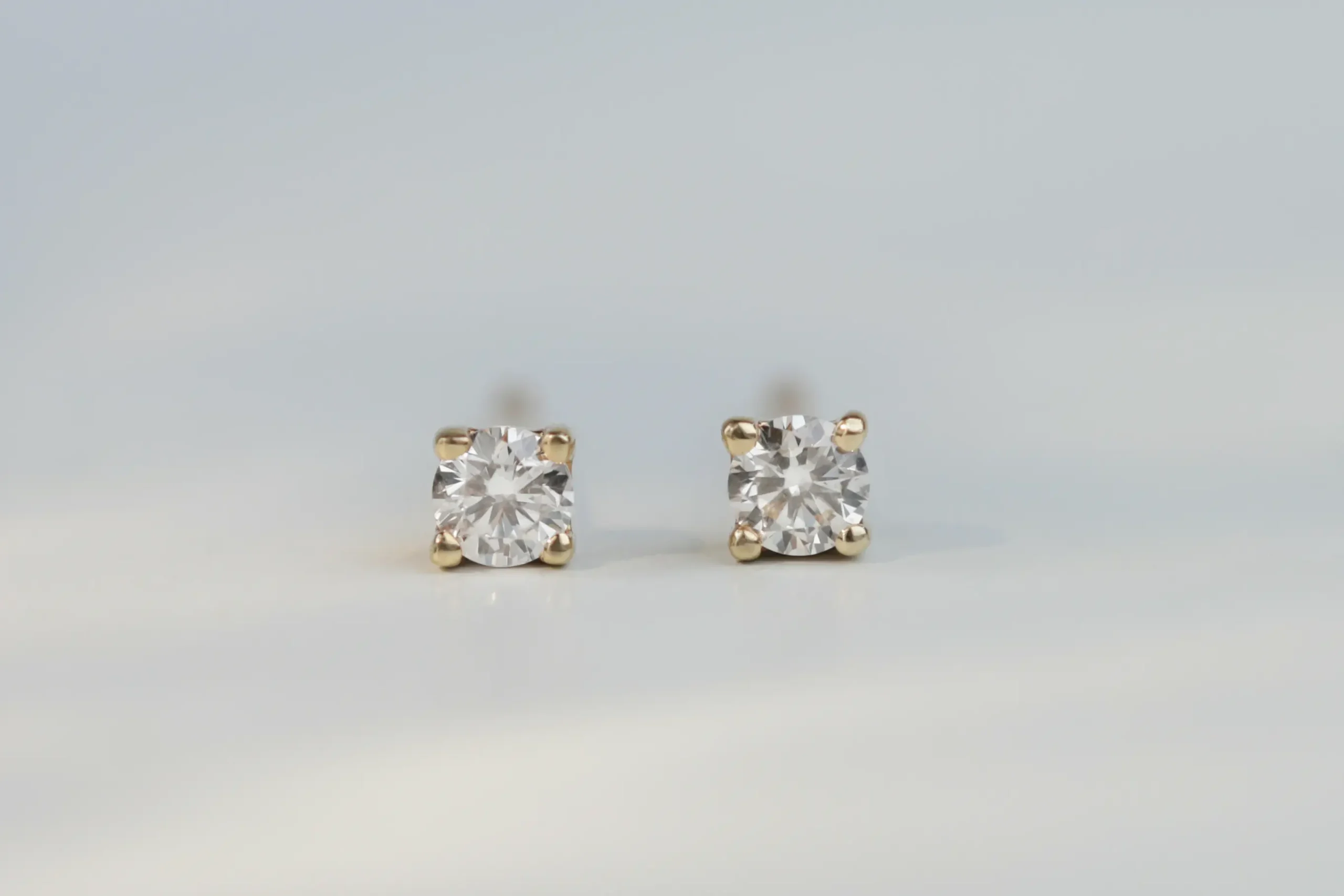 Серьги из золота с 2 бриллиантами в огранке «круглая» весом 0,15 карат, цвет 3, чистота 5.