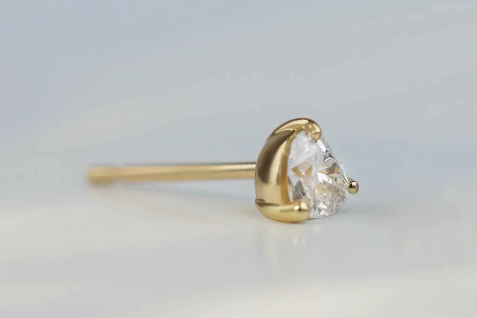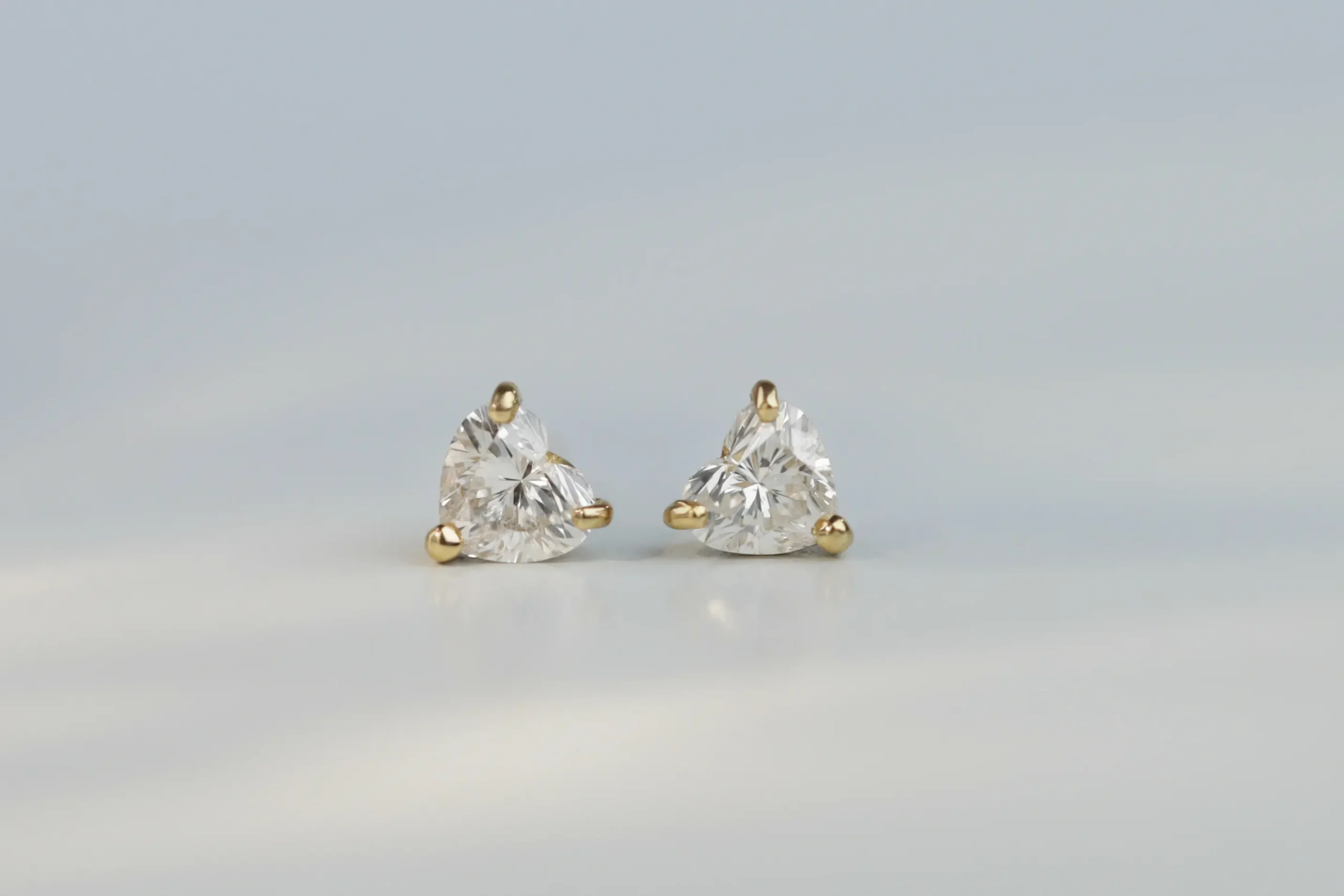 Серьги из золота с 2 бриллиантами в огранке «сердце» весом 0,32 карата, цвет 3, чистота 4.