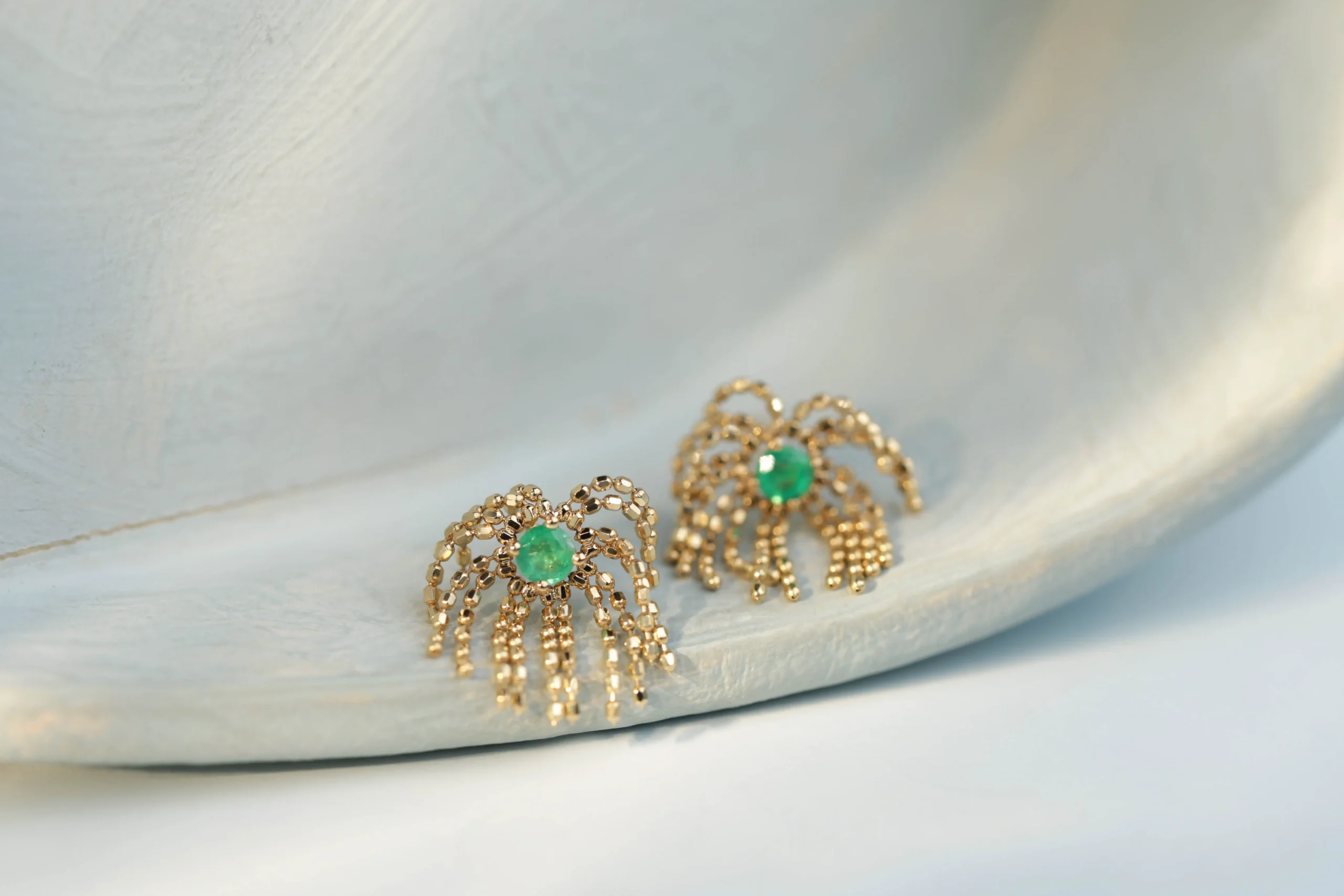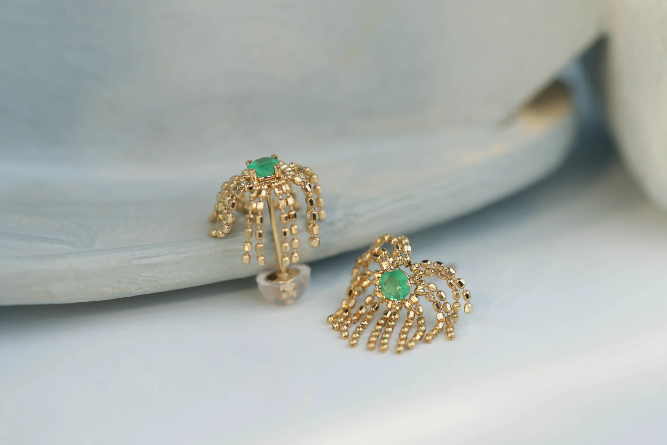 Серьги-пусеты с изумрудами и бриллиантами